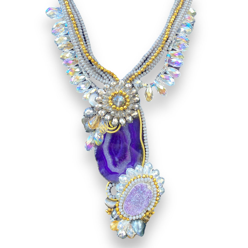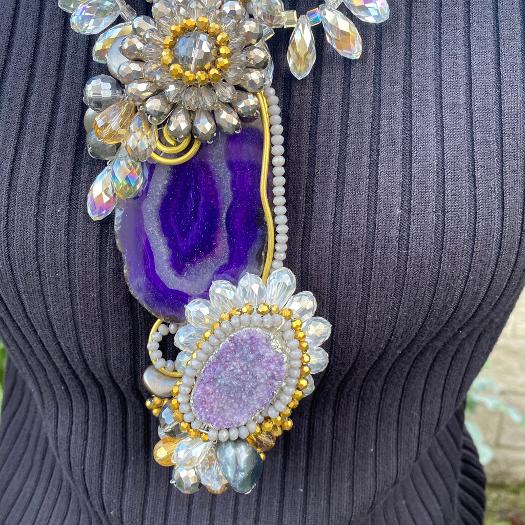 Handmade Unique 20" Necklace Single Slice Rock Amethyst Pendant Choker Neck Wear
