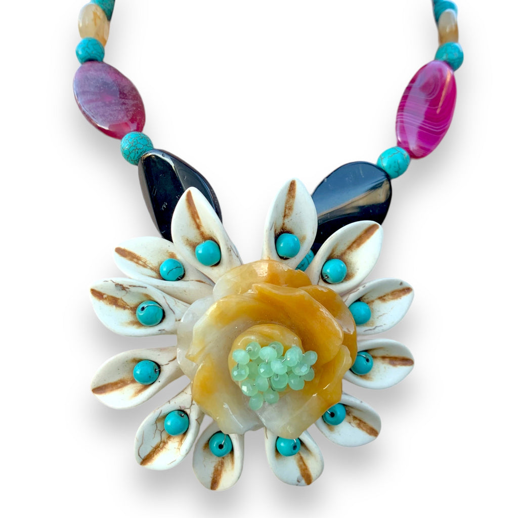 Handmade Choker 18" Hawaiian Cowrie Tropical Shell Choker Agate Turquoise Neck Wear