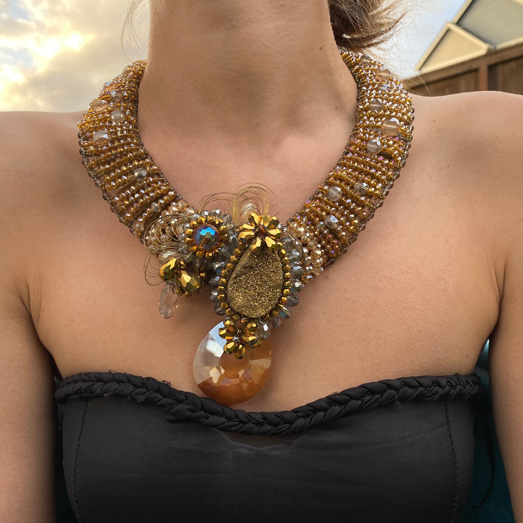 This stunning piece is a timeless work of art, embodying elegance & wonder. The intricate work will inspire awe and draw a crowd; you will feel amazing with this collar choker necklace on. Make a statement with this fabulous, one-of-a-kind unique piece! The necklace will lay flat on the chest and comfort you around the neck. This Choker Necklace is Perfect for all events.