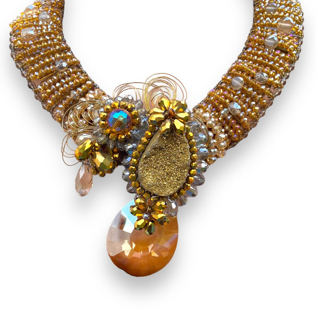 Handmade Necklace 20" Champagne Color Beads Unique Pendant Choker
