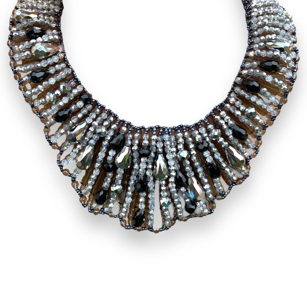 Handmade Necklace 20" Metallic Black Grey Beads Glitzy Collar Wrap Choker