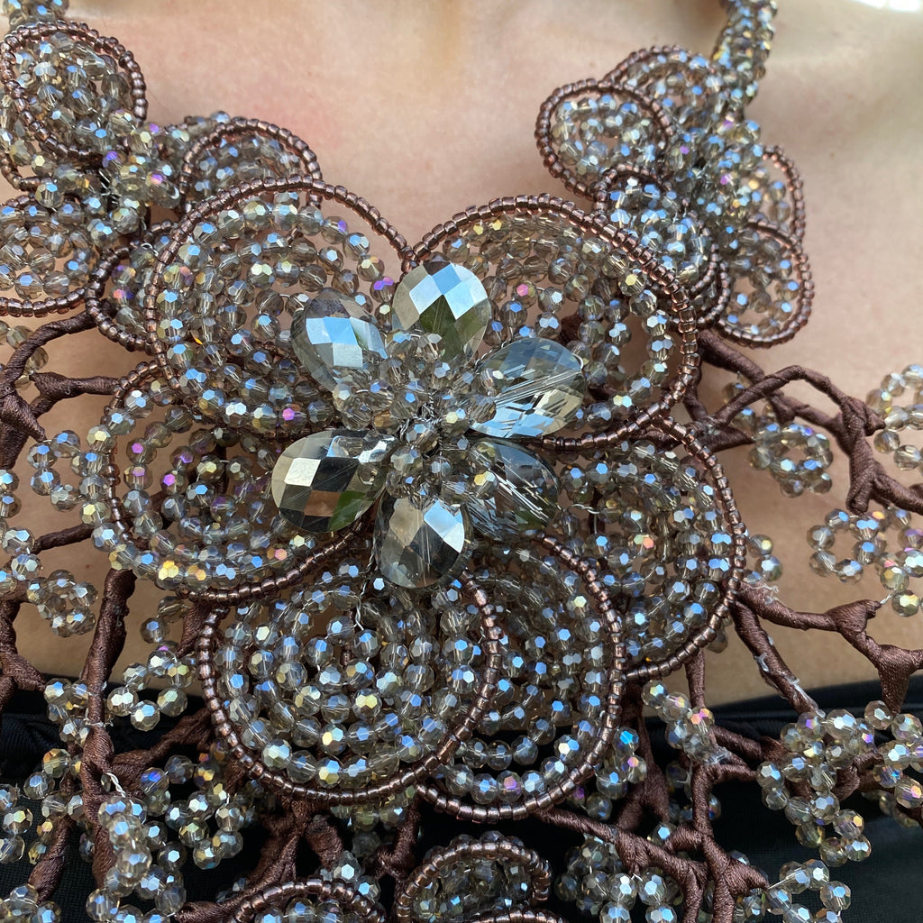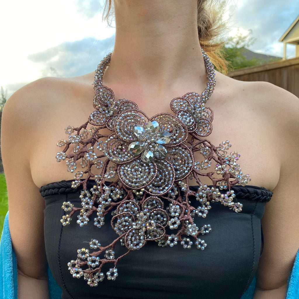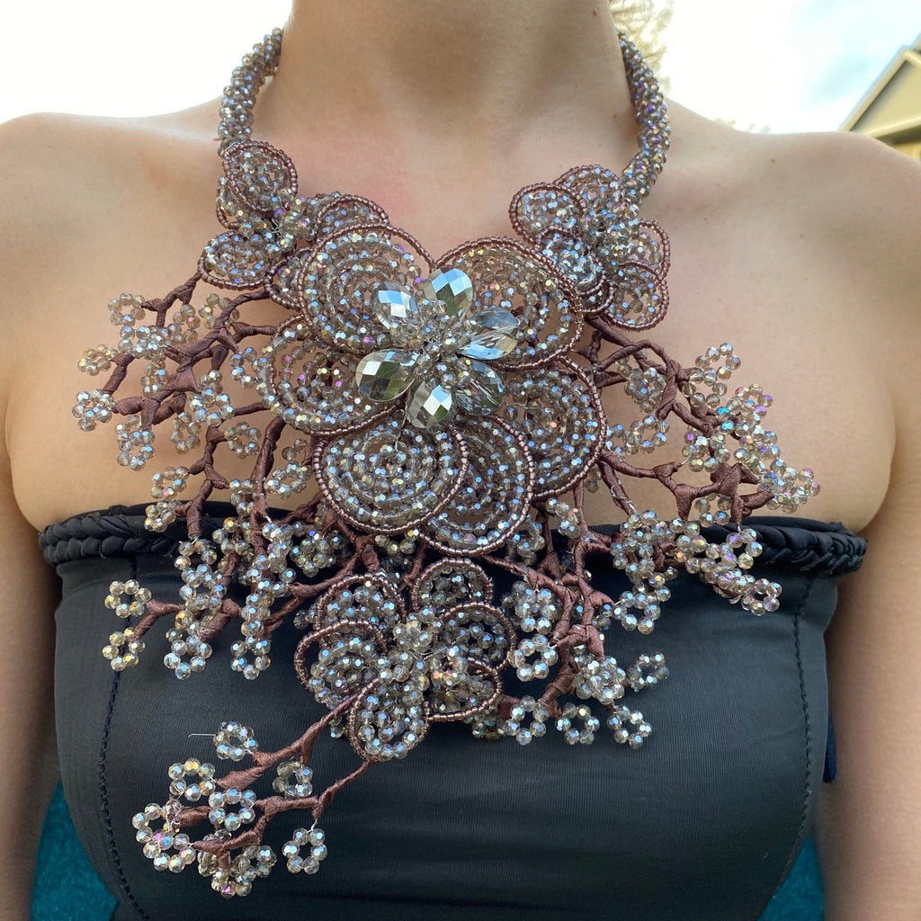 Statement Handmade Necklace Cluster Drippy 20" One of a Kind Beads Choker Body Necklace