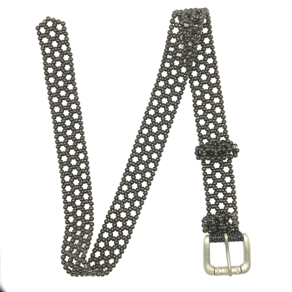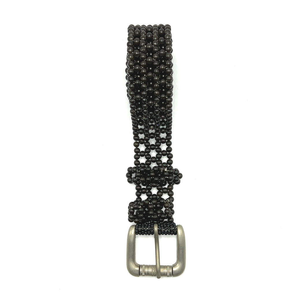 Handcrafted Black Pearl Frame Style Buckled Belt Unique Giftware