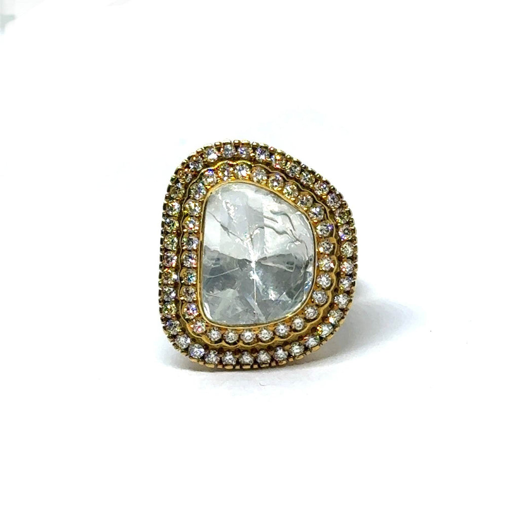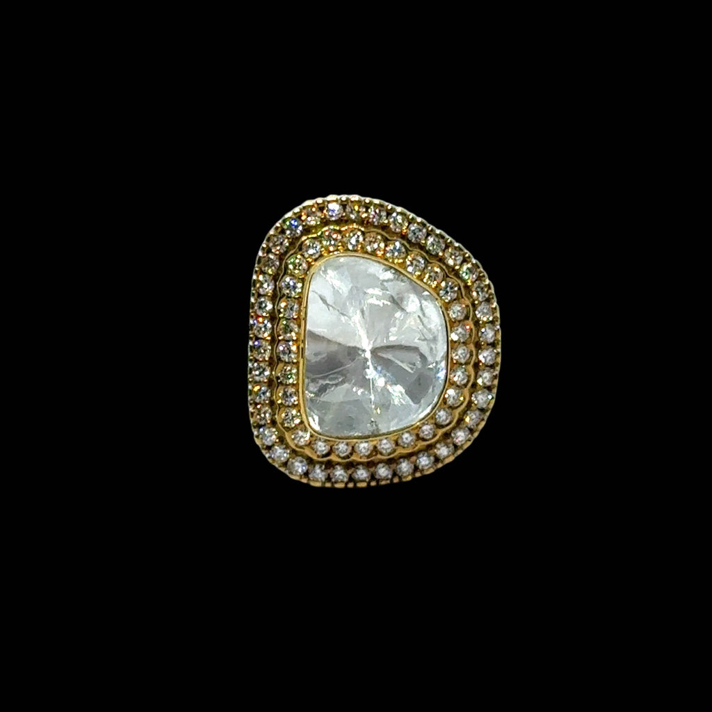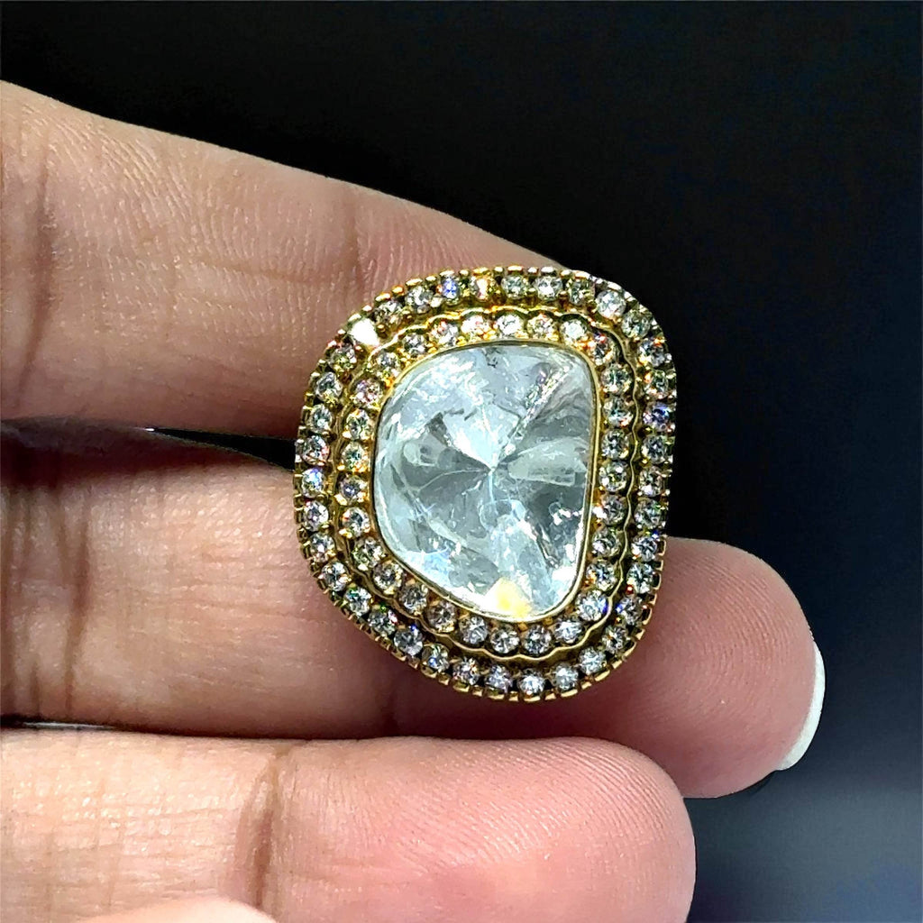 Celebrate the enduring charm of traditional jewelry with this elegant 14K Yellow Gold Diamond Polki Ring Triple Halo Layered Design, a perfect festive accessory that embodies timeless ethnic sophistication. Adorned with natural uncut Polki diamonds, each stone is carefully hand-selected and expertly set to radiate a soft, regal brilliance characteristic of Royal Indian jewelry.