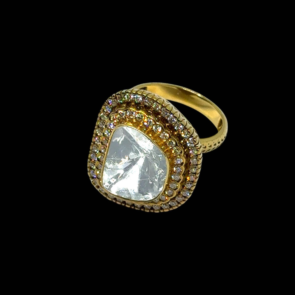 This ring blends the grandeur of traditional Indian bridal jewelry with a modern twist—perfect for weddings, celebrations, or heirloom-style fashion. Each detail echoes the craftsmanship of royal Mughal aesthetics, offering unmatched sparkle and cultural richness.