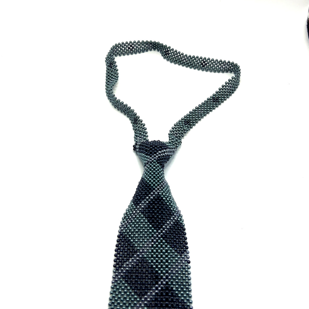 Handcrafted Diamond Linked Pattern Pearl Tie Unique and Stylish