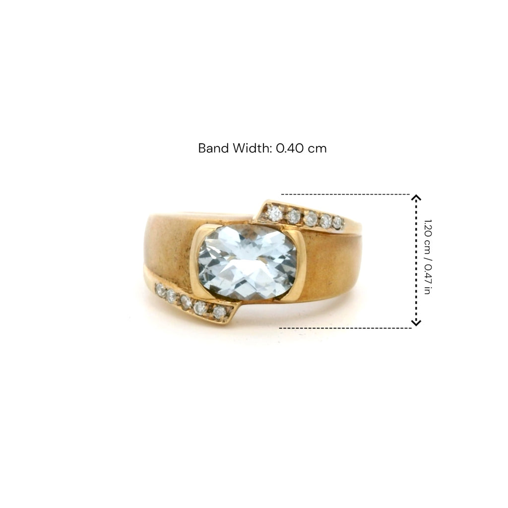 Celebrate timeless sophistication with this striking 14K yellow gold art deco–inspired ring, featuring a luminous oval natural Aquamarine secured in a smooth bezel-style setting. The serene blue gemstone is beautifully complemented by sparkling flush-set Diamond accents, adding refined brilliance without overpowering the bold design.