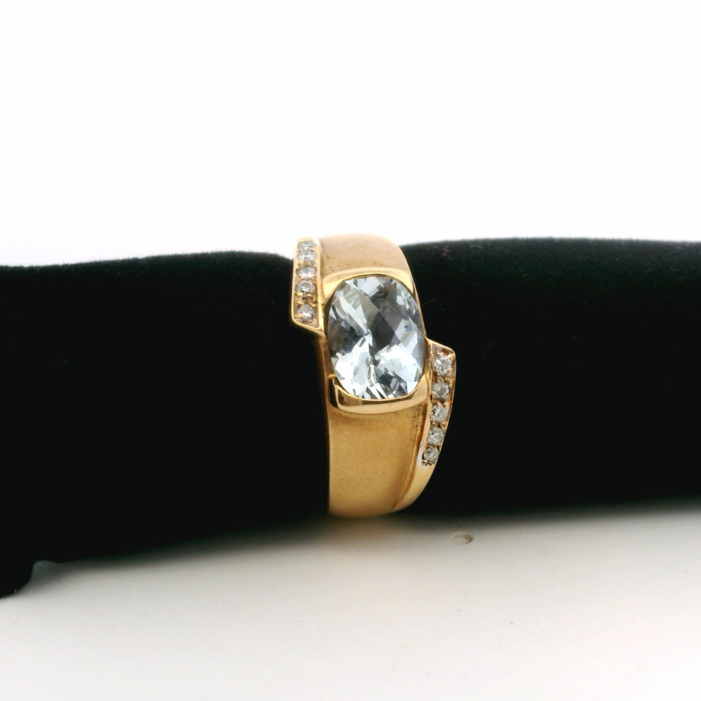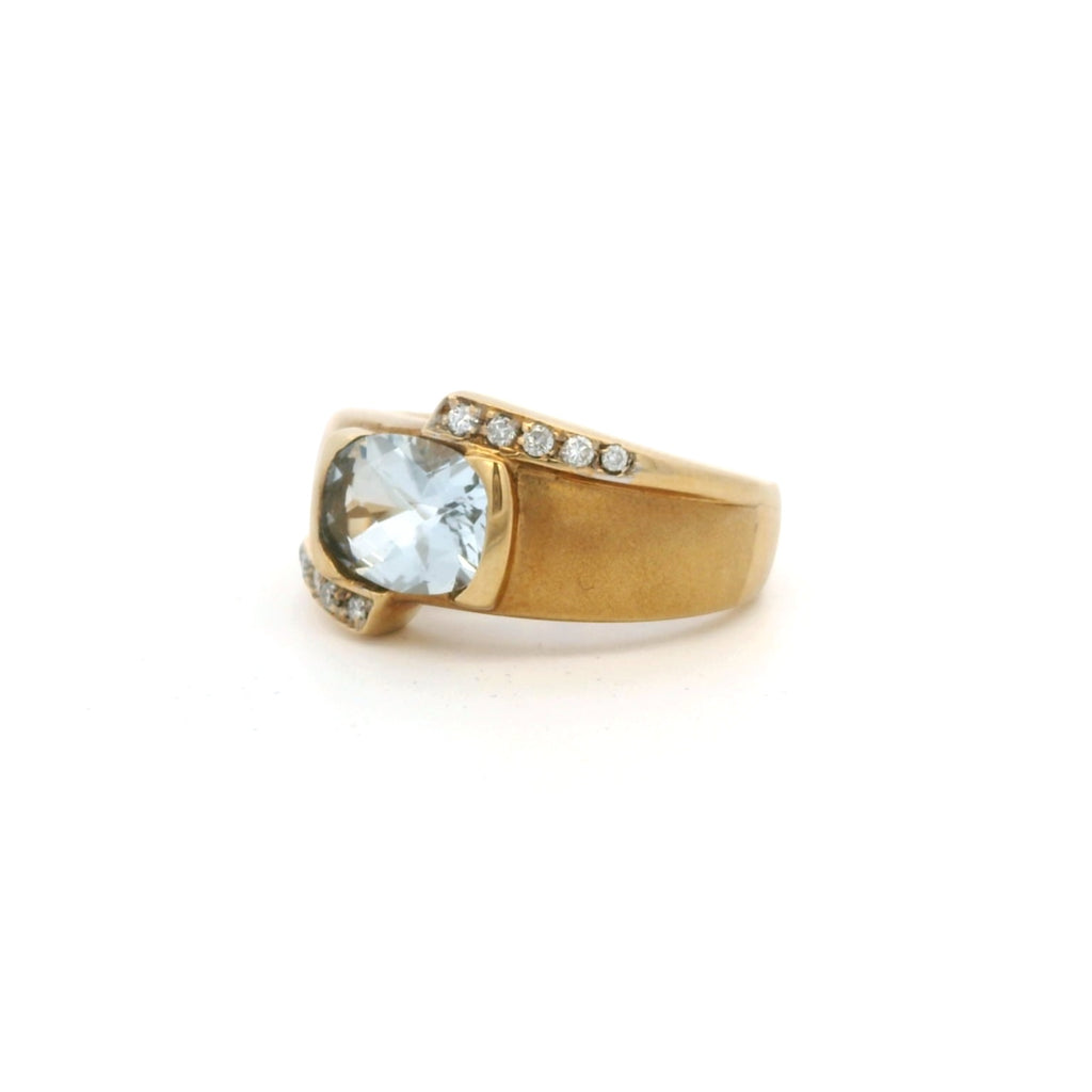 14K Yellow Gold Art Deco Ring | Natural Aquamarine & Diamond Flush-Set Band | Bold Contemporary Statement Design