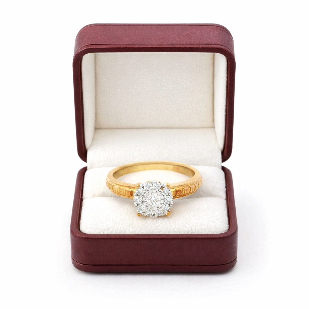 Celebrate timeless sophistication with this exquisite 18K rose gold Diamond halo ring, featuring a radiant illusion cluster center designed to maximize brilliance and create the look of a larger solitaire. Surrounding diamonds enhance the halo effect, delivering exceptional sparkle from every angle.
