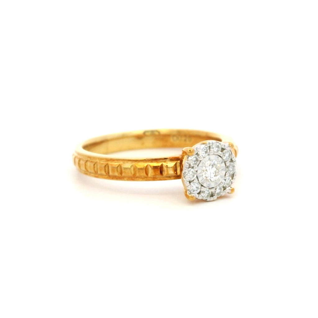 18K Rose Gold Vintage Diamond Halo Ring | Round Cluster Center | Classic Textured Pattern Band