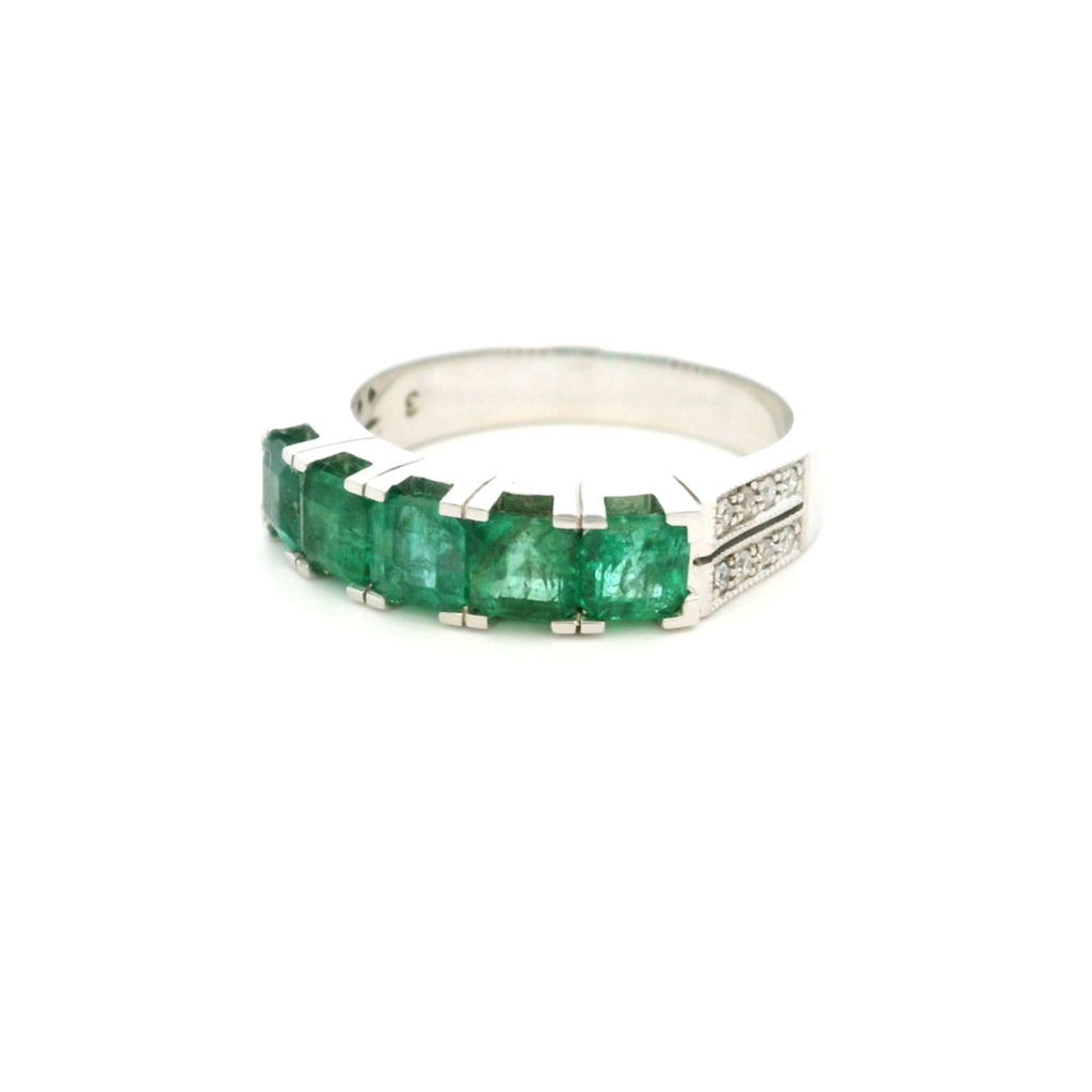 18K White Gold Five-Stone Natural Emerald & Diamond Band Ring | Anniversary Statement Fine Jewelry