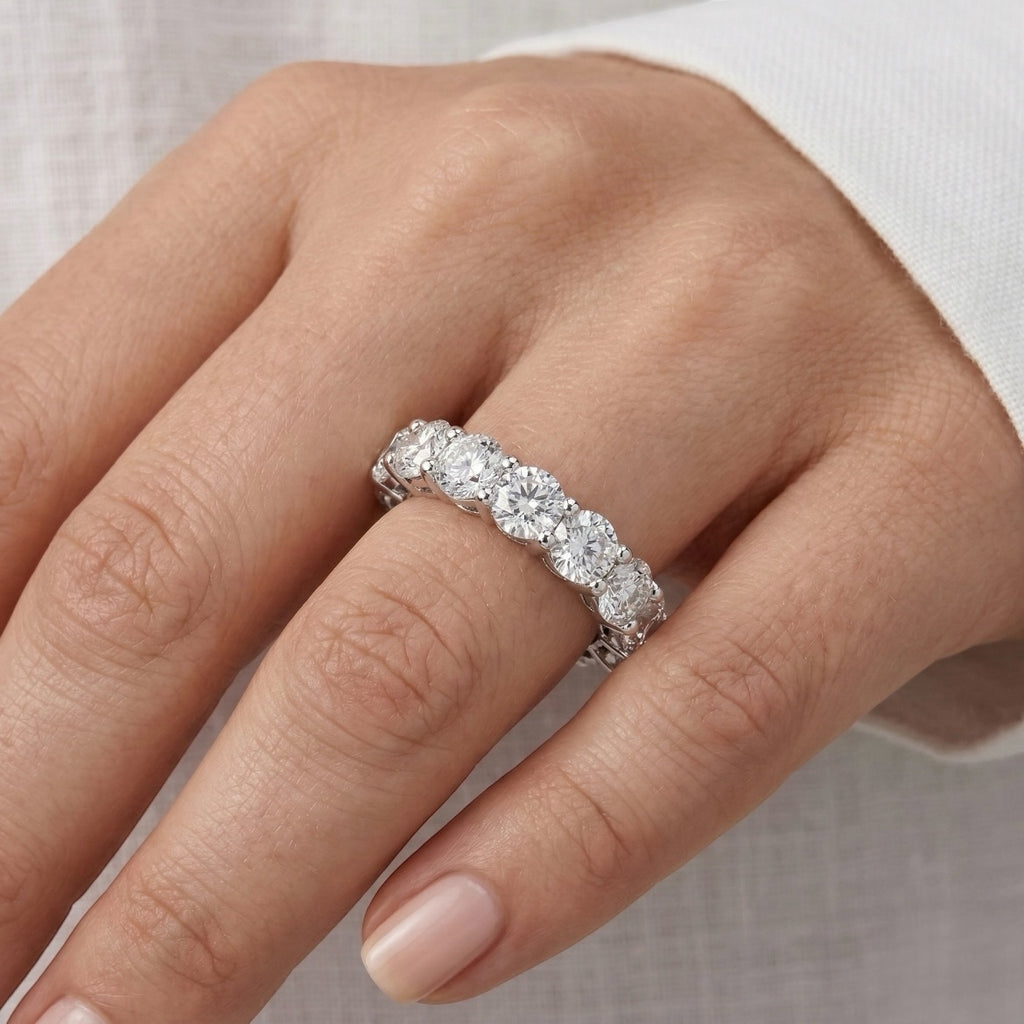 18K White Gold Natural Diamond Eternity Ring | Classic Stackable Wedding Band | Timeless Elegance