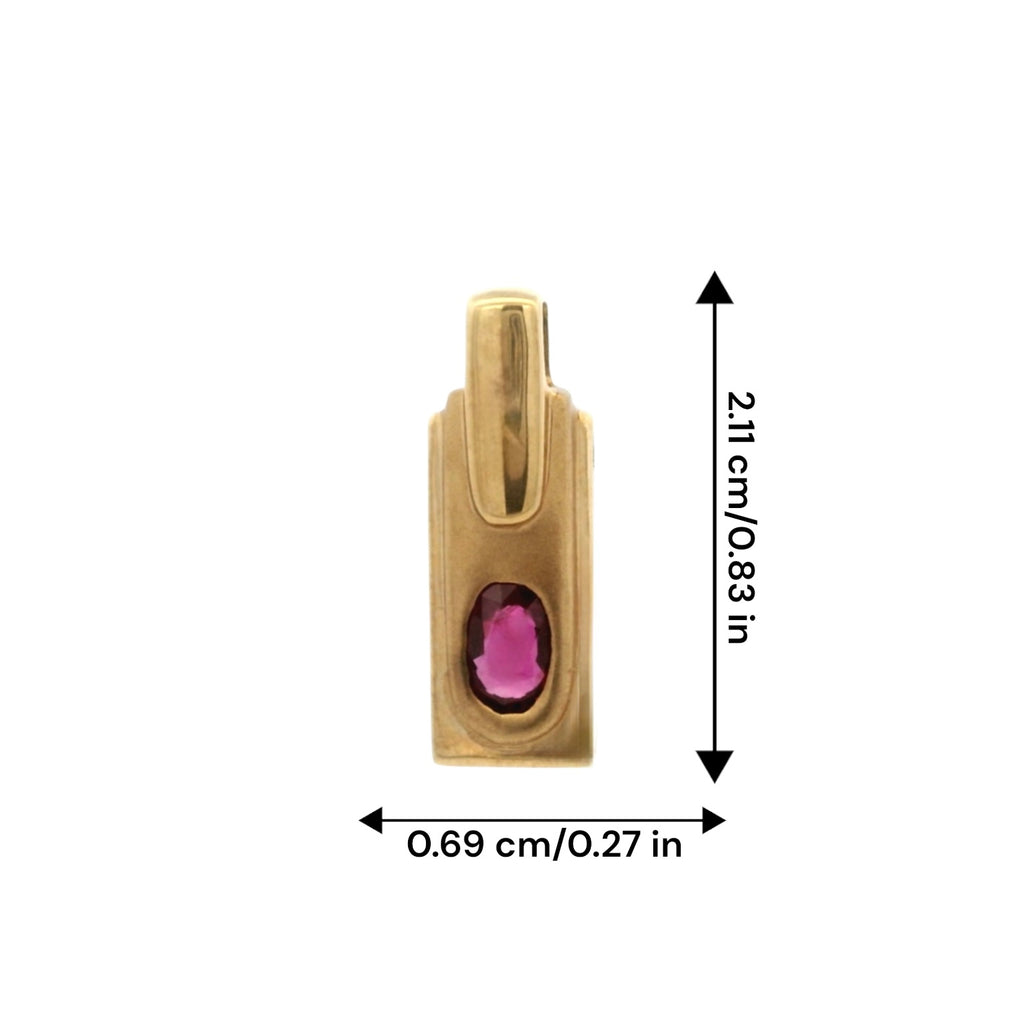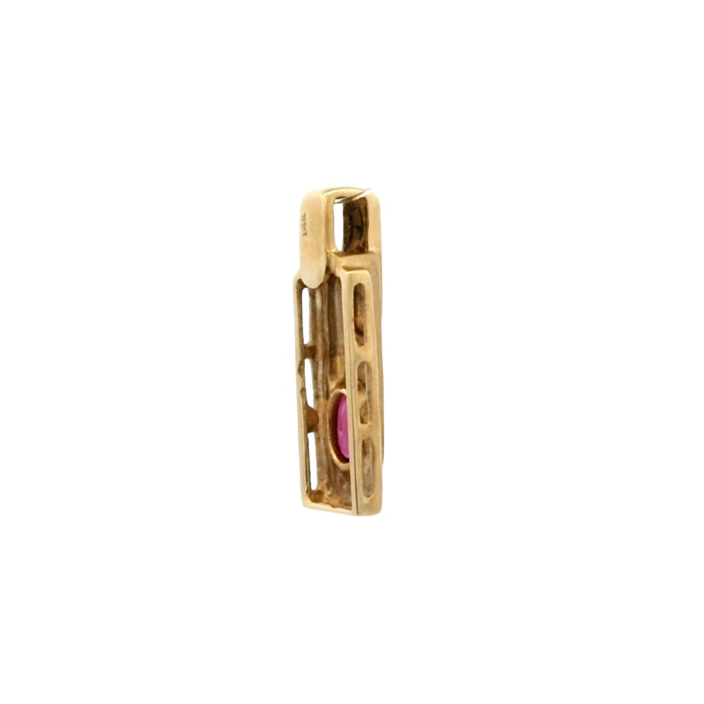 14K Yellow Gold Natural Ruby Bezel-Set Bar Pendant | Rectangular Base with Thick Polished Bail