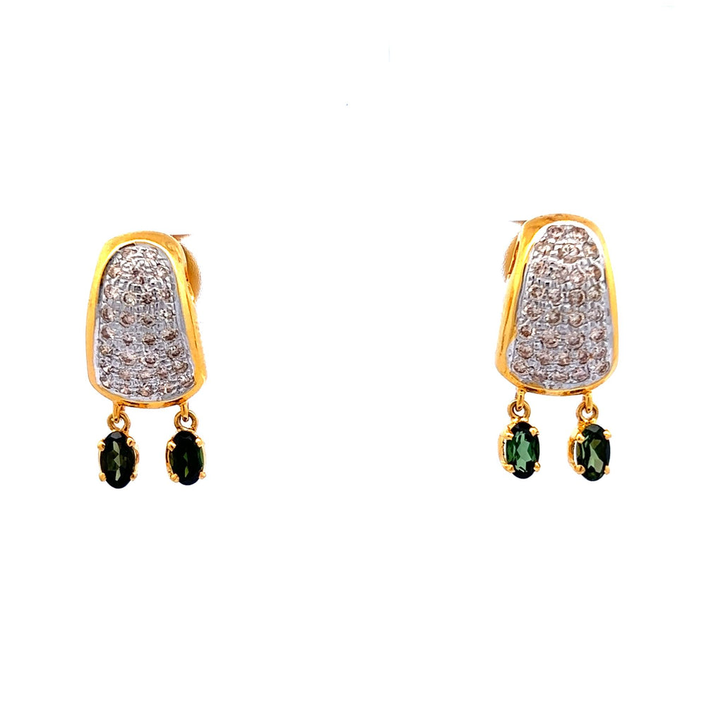 18K Yellow White Gold Pendant Earring Set with Natural Diamond & Green Tourmaline Jewellery
