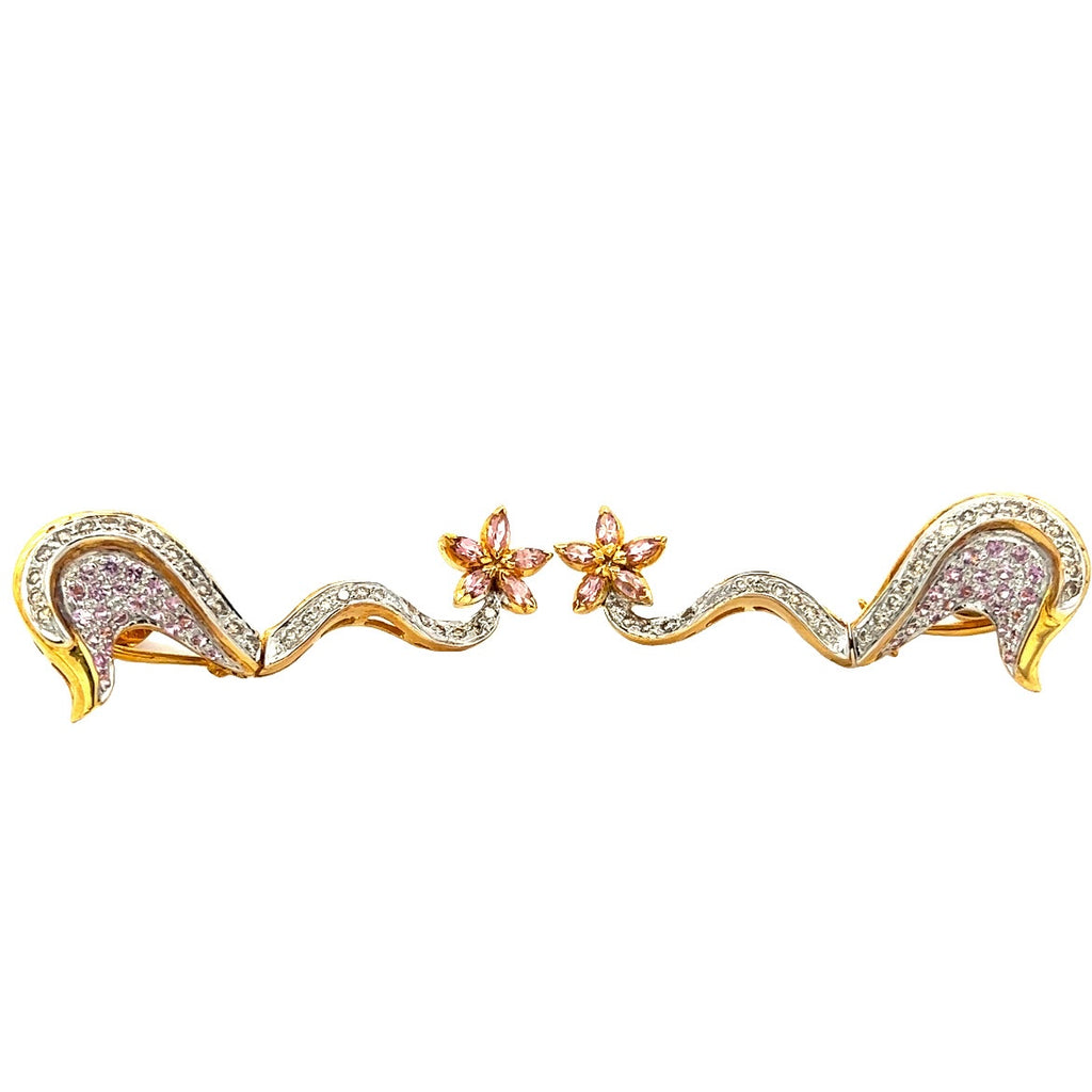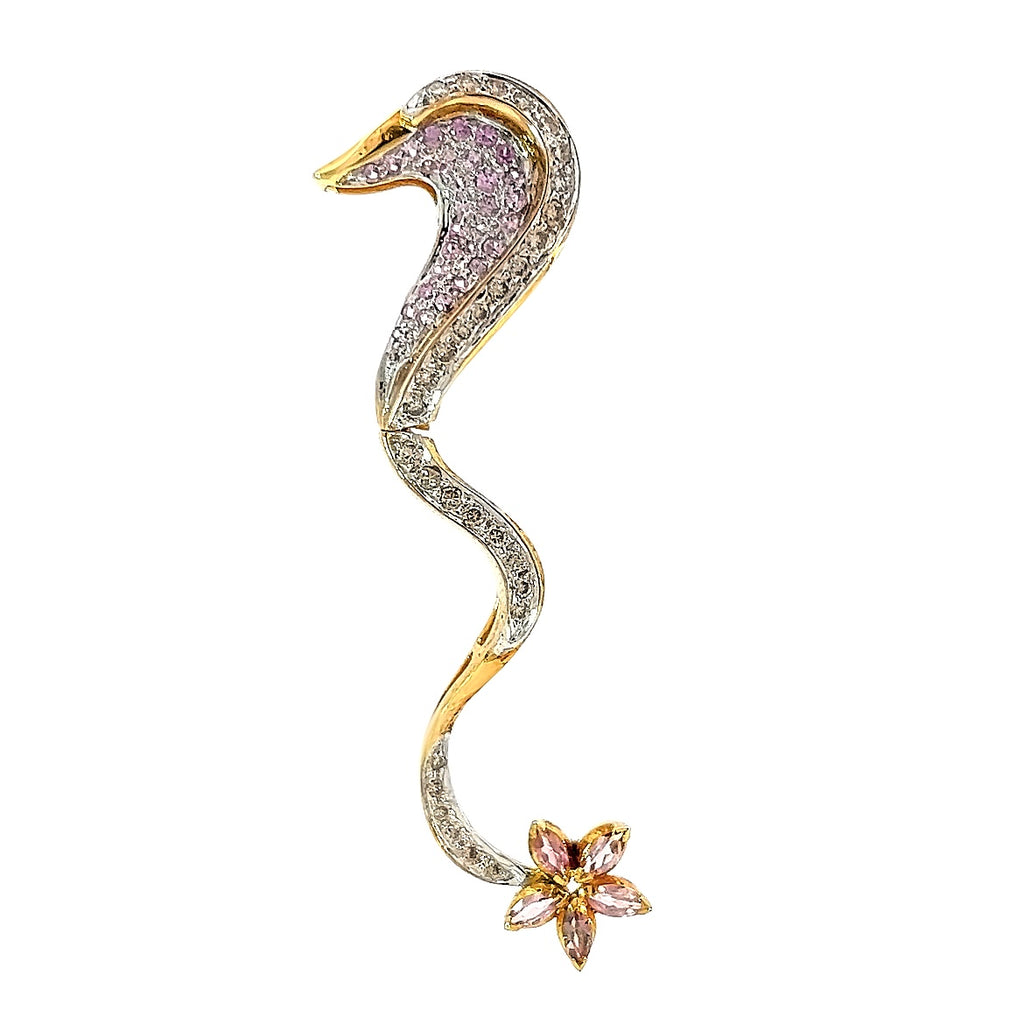 Celebrate whimsical elegance with this 18K Two Tone Gold Pendant Earring Seahorse Set, featuring delicate natural diamonds and radiant pink sapphire gemstones. Crafted in a blend of yellow and white gold, the design captures the playful charm of the seahorse motif with refined artistry.