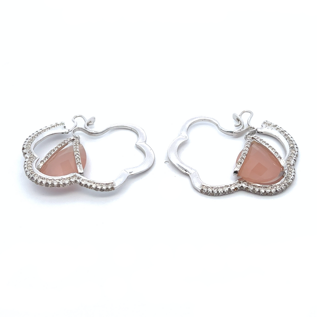 18K White Gold Diamond Pink Chalcedony Swirl Hoop Earring