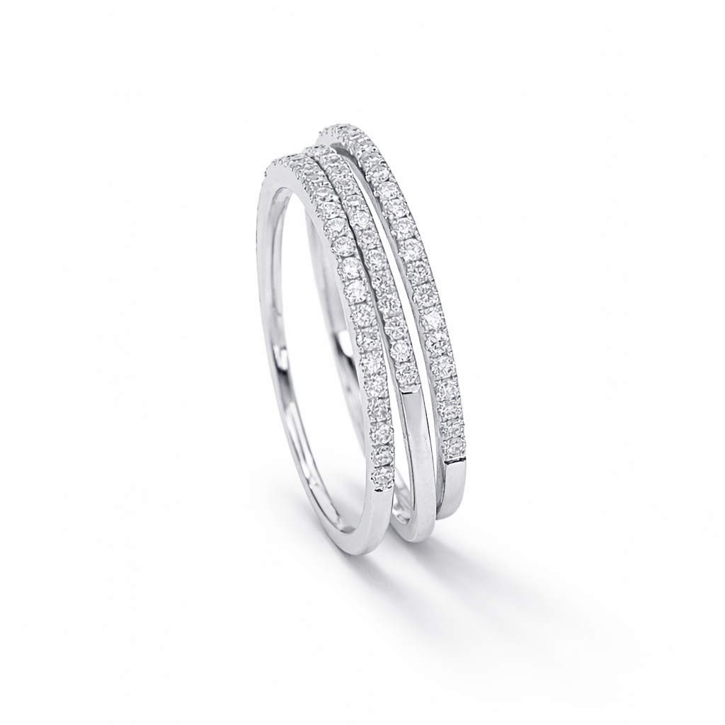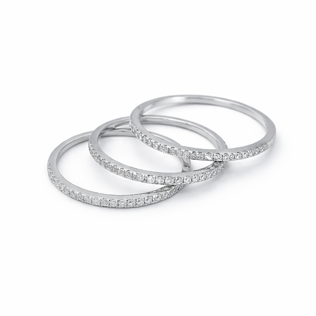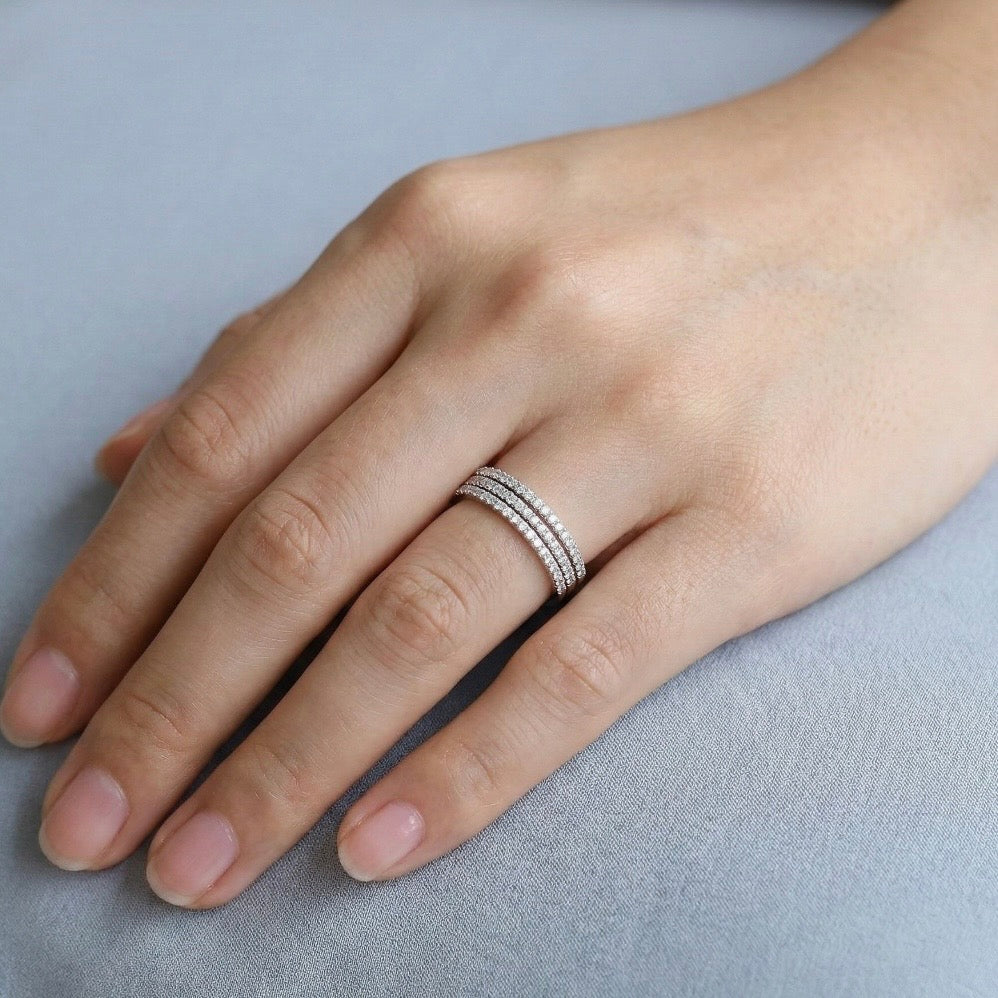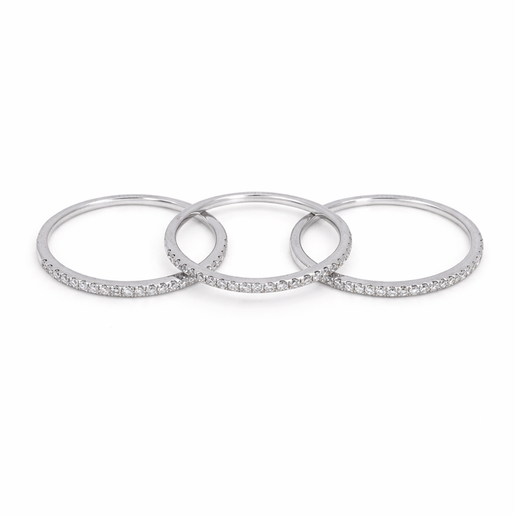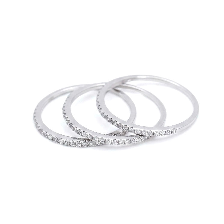 18K White Gold Diamond Triple Stackable Rings | Half Eternity Bands | Shared Prong Setting Design Jewelry
