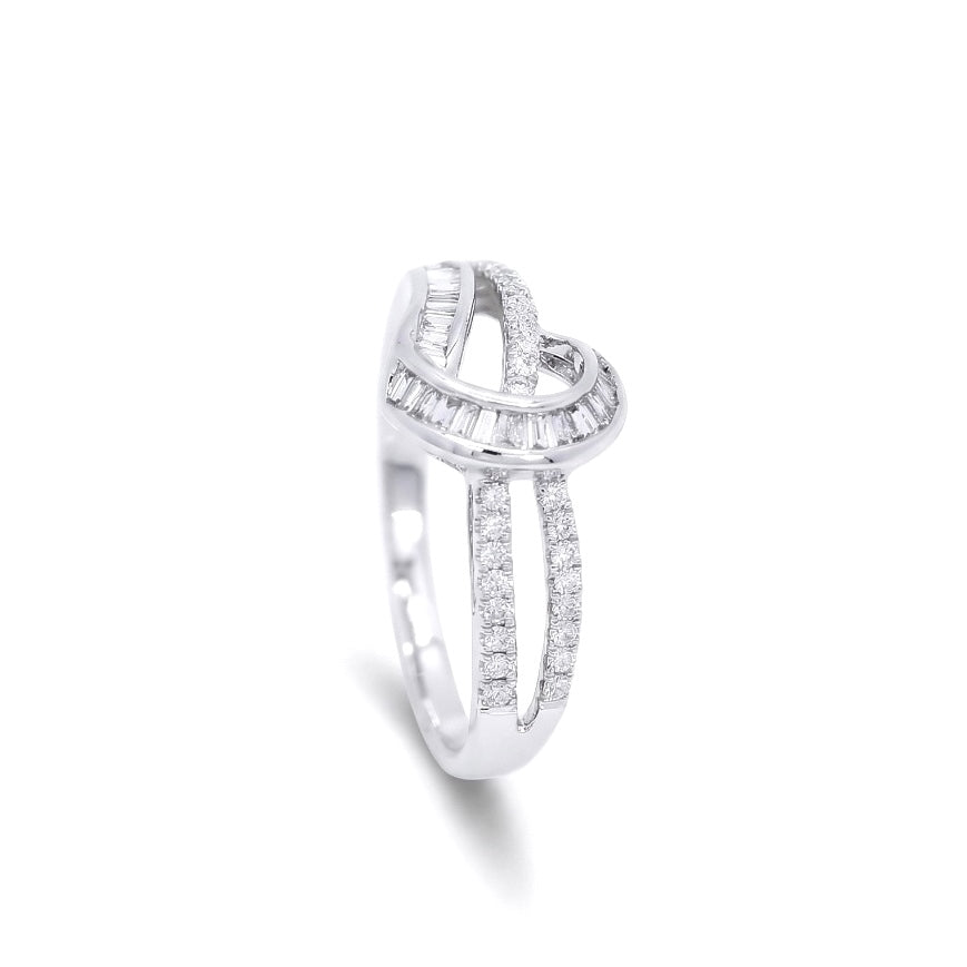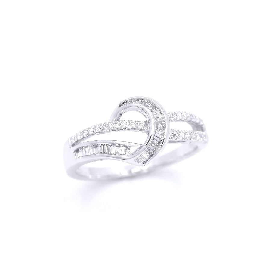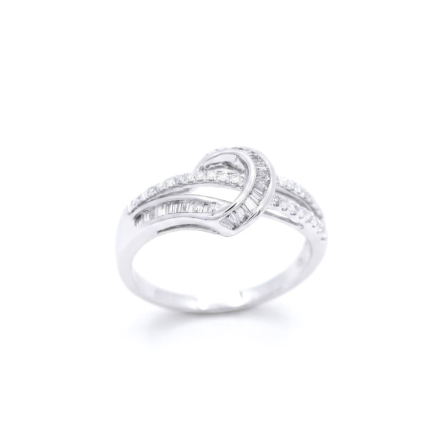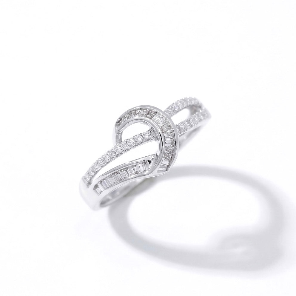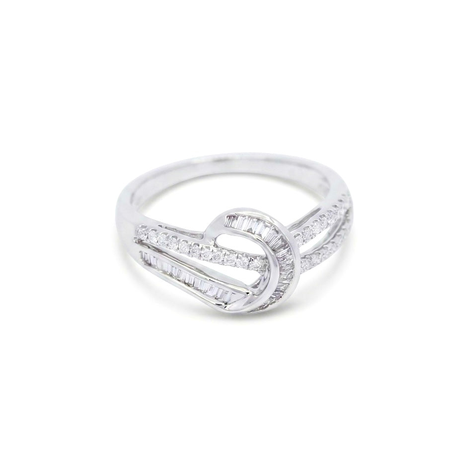 Celebrate bold elegance with this striking 18K white gold knot buckle statement ring, adorned with brilliant natural Diamonds in a refined combination of baguette and pavé settings.