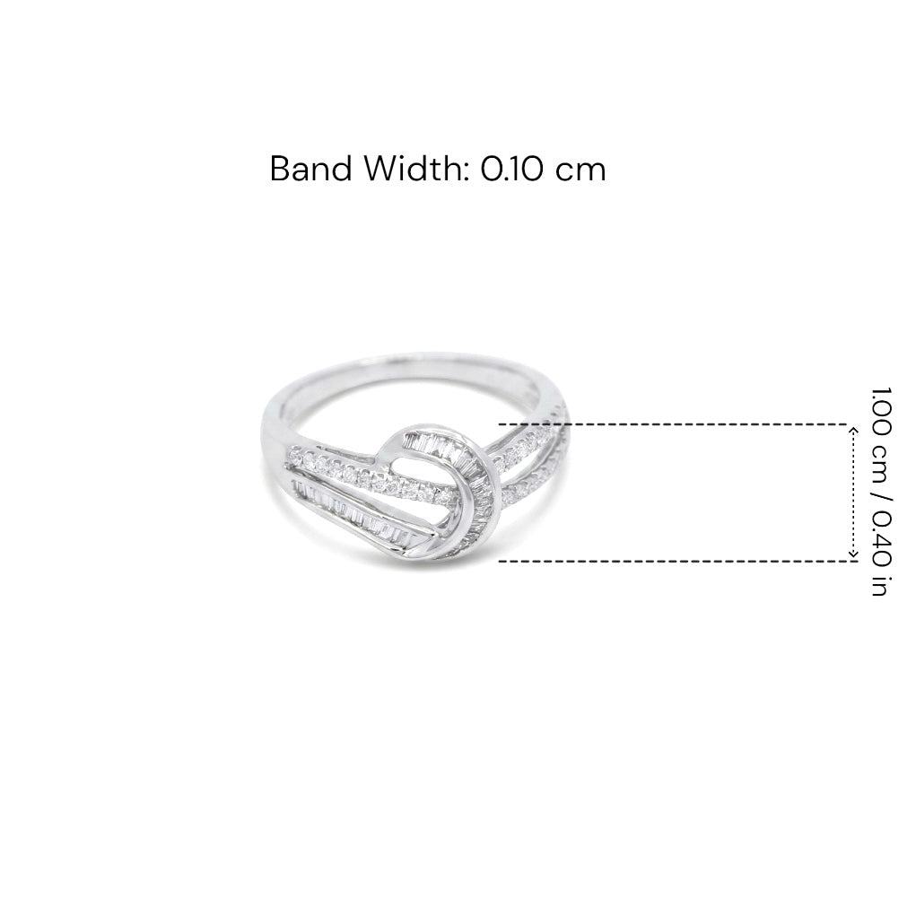 The flowing intertwined crisscross swirl design creates a sculptural buckle-inspired centerpiece, symbolizing strength, unity, and modern sophistication. The contrast between sleek baguette diamonds and shimmering pavé accents enhances depth and sparkle from every angle.