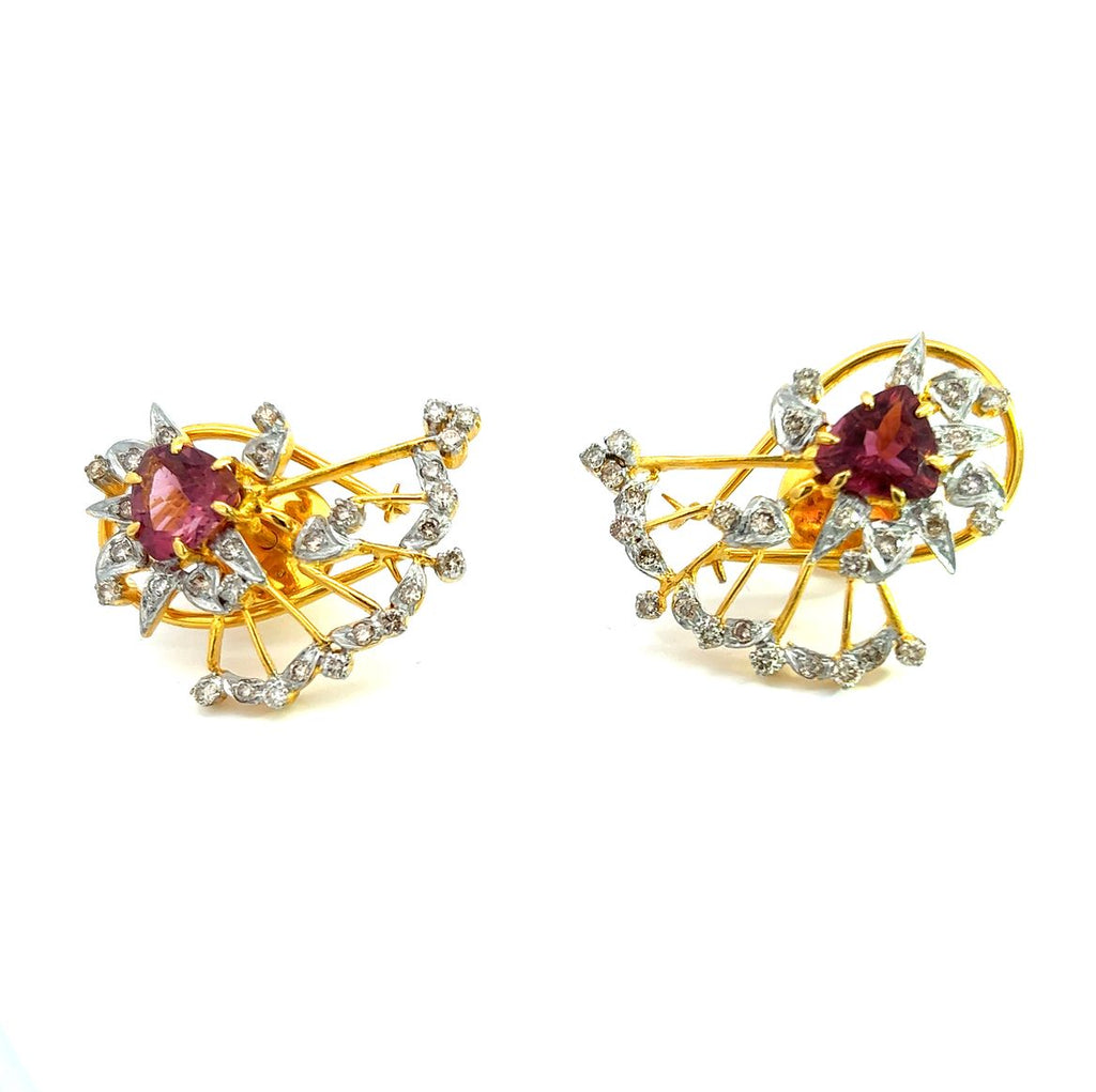Celebrate timeless elegance with this exquisite 18K Yellow Gold Necklace Earring Set, featuring natural diamonds, radiant pink tourmaline, and rich-hued rhodolite gemstones. Each element is carefully selected to highlight the beauty of high-end craftsmanship and vibrant gemstone harmony.