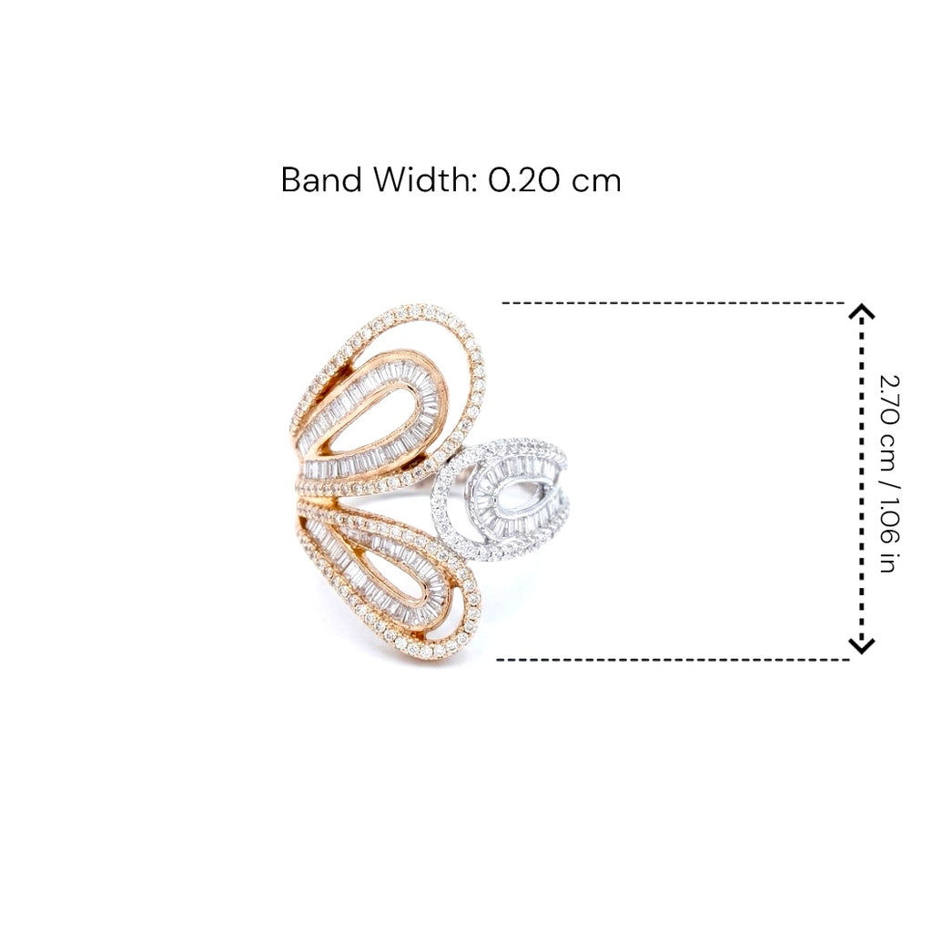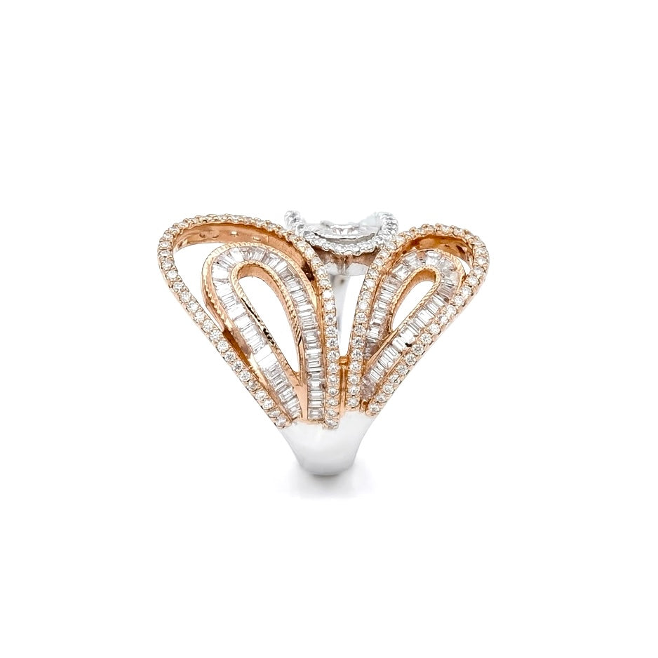 18K White & Rose Gold Tri-Leaf Swirl Statement Ring | Natural Diamond | Openwork Butterfly-Inspired Design