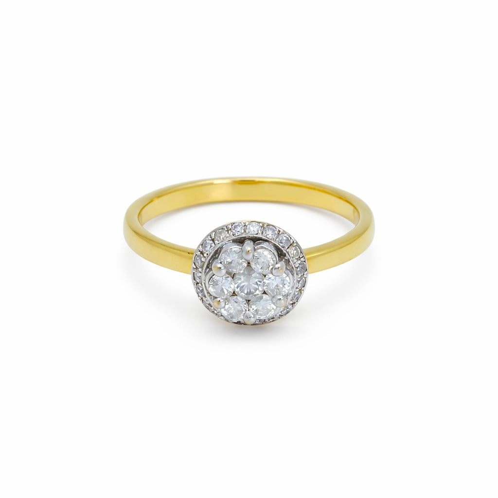 18K Yellow Gold Halo Illusion Wedding Ring | Natural Diamond Round Cluster Sunburst Design | Classic Jewelry