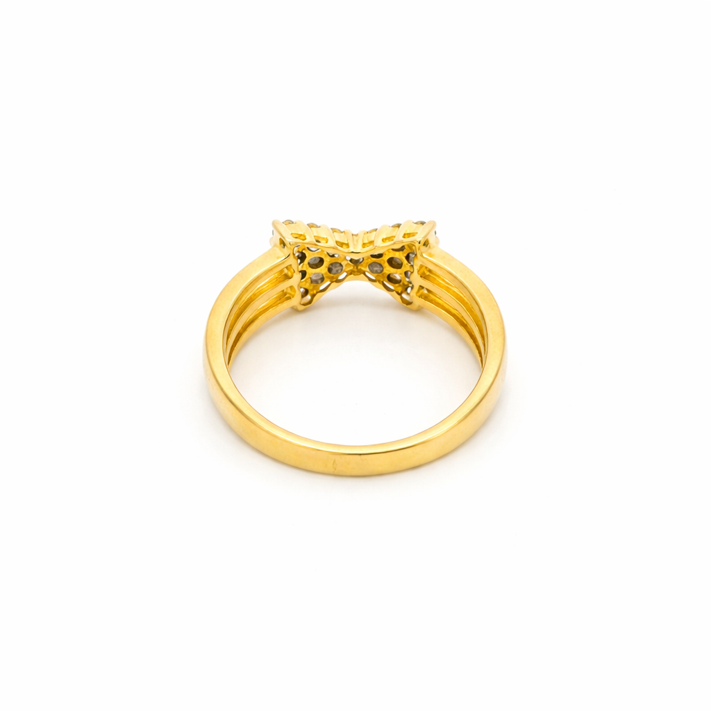 Celebrate timeless romance with this exquisite 18K yellow gold statement bow ring, beautifully adorned with natural Diamonds in a dazzling cluster setting. Designed in an elegant bow ribbon love knot motif, this modern masterpiece symbolizes affection, unity, and feminine grace.
