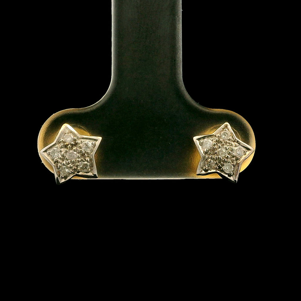 18K Yellow & White Gold | Natural Diamond Star Motif Stud Earrings | Round Cluster Jewelry