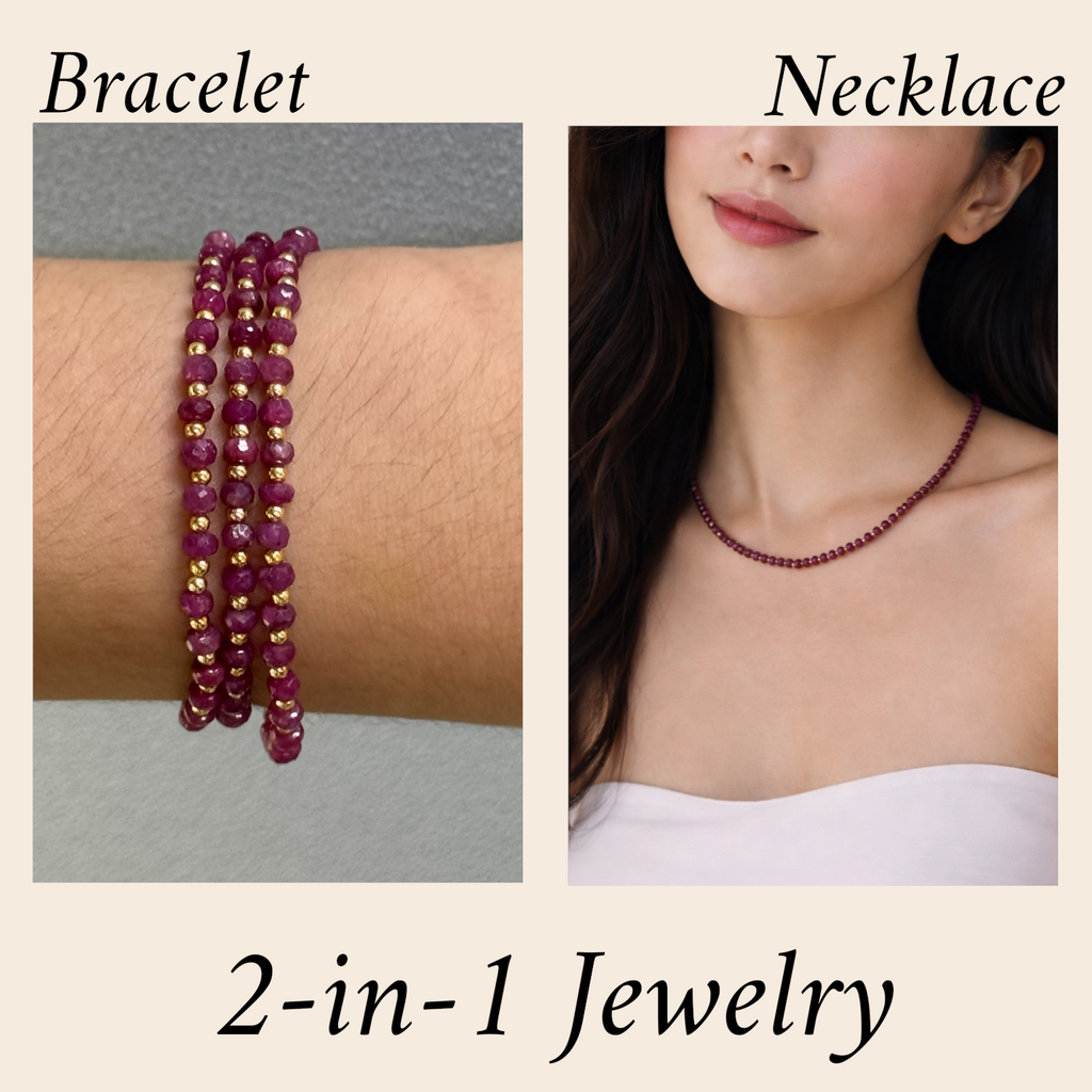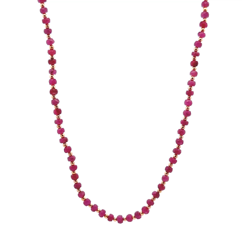 Celebrate passion and vibrant energy with our captivating 925 sterling silver station necklace, featuring natural ruby faceted rondelle beaded gemstones. Each genuine ruby, glowing with intense crimson shades that symbolize desire, enthusiasm, and life-affirming vigor, is precisely faceted for dazzling sparkle and flow. Handcrafted with polished sterling silver stations for elegant sophistication, this versatile beaded necklace complements any style-from everyday flair to romantic evenings. Channel ruby's reputed passionate properties, igniting creativity and emotional intensity, in a lightweight design with a secure clasp for effortless comfort. A romantic gift or personal energizer, this luxurious gemstone jewelry fuses timeless beauty with invigorating passion.