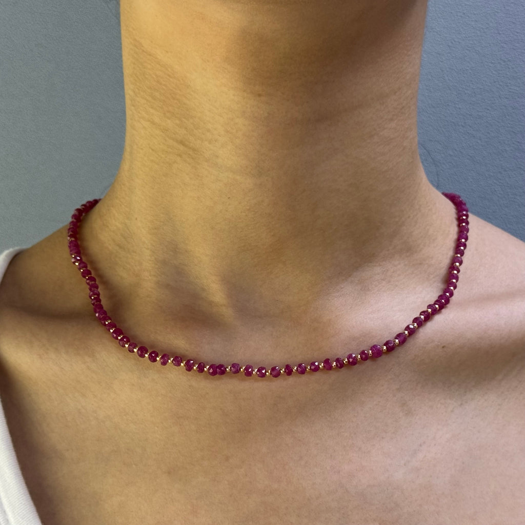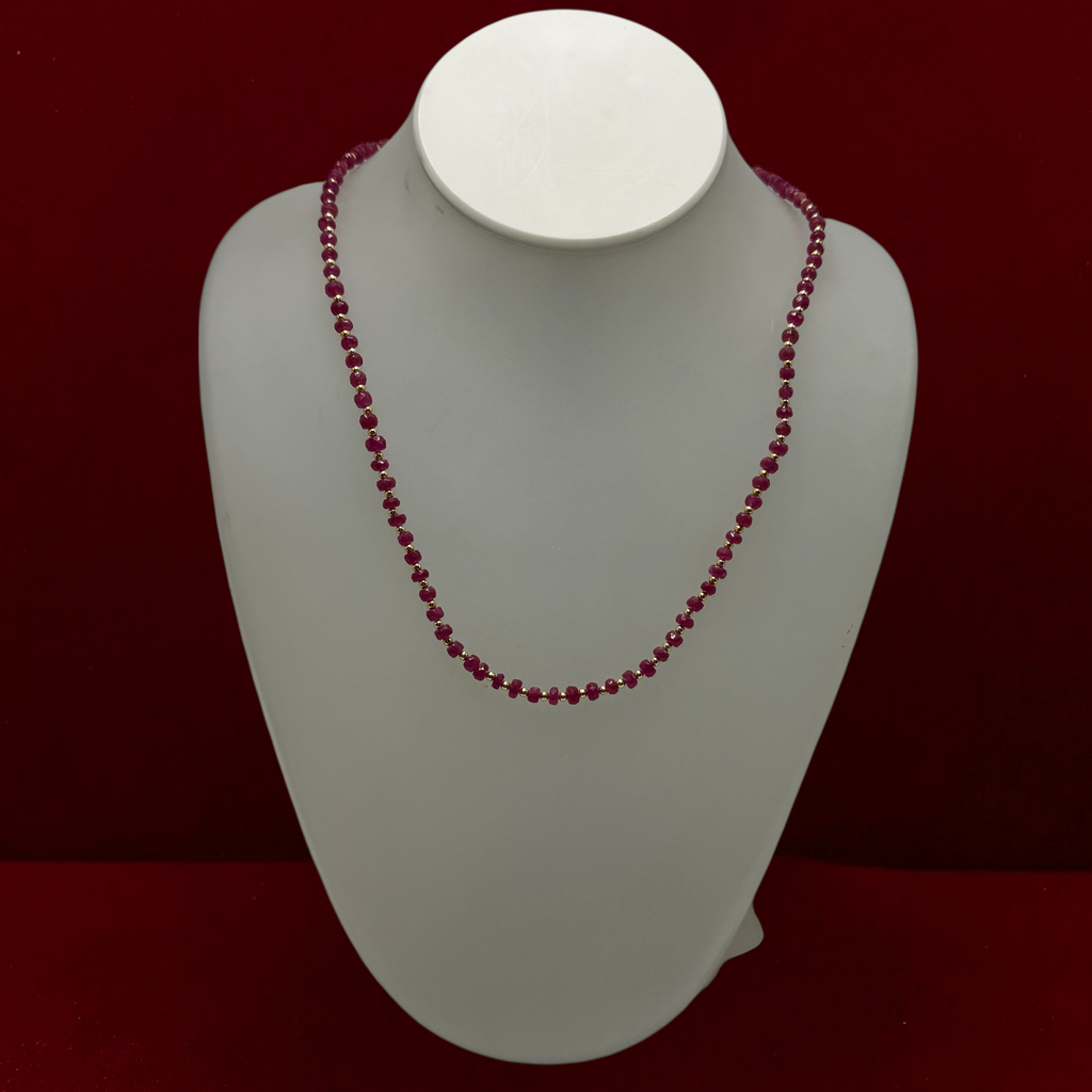 Celebrate heart vitality and emotional renewal with our exquisite 925 sterling silver station necklace, featuring natural ruby faceted rondelle beaded gemstones. Each genuine ruby, with its vivid crimson glow symbolizing life force, love, and cardiac strength, is expertly faceted for captivating sparkle and energy. Handcrafted with polished sterling silver stations for elegant contrast, this versatile beaded necklace adds a passionate touch to any outfit-perfect for daily wear or meaningful occasions. Harness ruby's reputed revitalizing properties, supporting heart health, passion, and overall vitality, in a lightweight design with a secure clasp for comfortable elegance. A heartfelt gift or personal enhancer, this luxurious gemstone jewelry blends timeless beauty with invigorating symbolism.