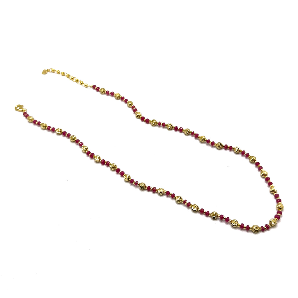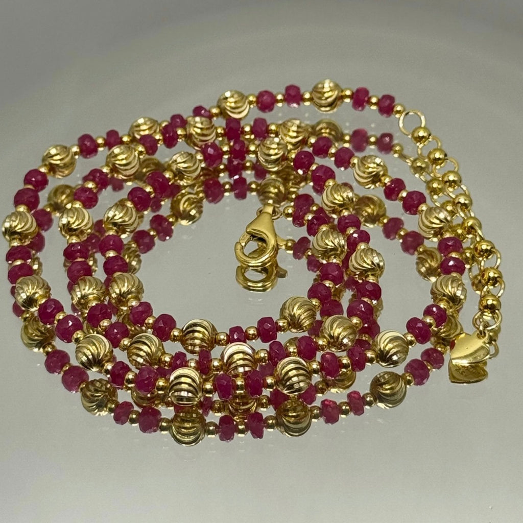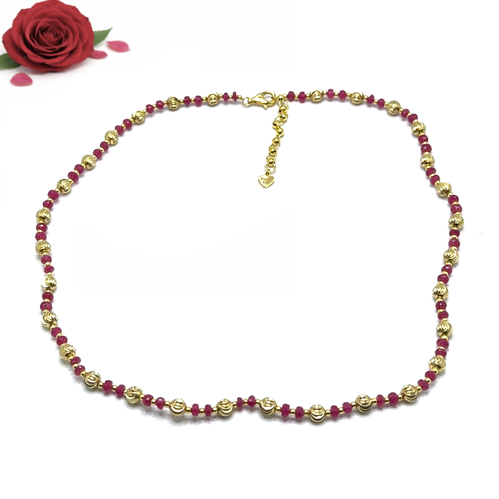 Celebrate passion, vitality, and timeless elegance with this captivating 925 sterling silver station necklace, adorned with natural Ruby faceted rondelle beaded gemstones and warm gold charms. As the revered July birthstone, Ruby is celebrated for igniting love, courage, and positive energy, while offering protective and empowering properties to enhance your daily life. Handcrafted with a delicate silver chain, this piece showcases deep red, shimmering faceted beads interspersed with polished gold charms, creating a luxurious, boho-chic contrast that's versatile for layering or standalone wear with any outfit. Hypoallergenic and durable with a secure lobster clasp, it's perfect as a birthstone gift for July birthdays, anniversaries, or self-expression.