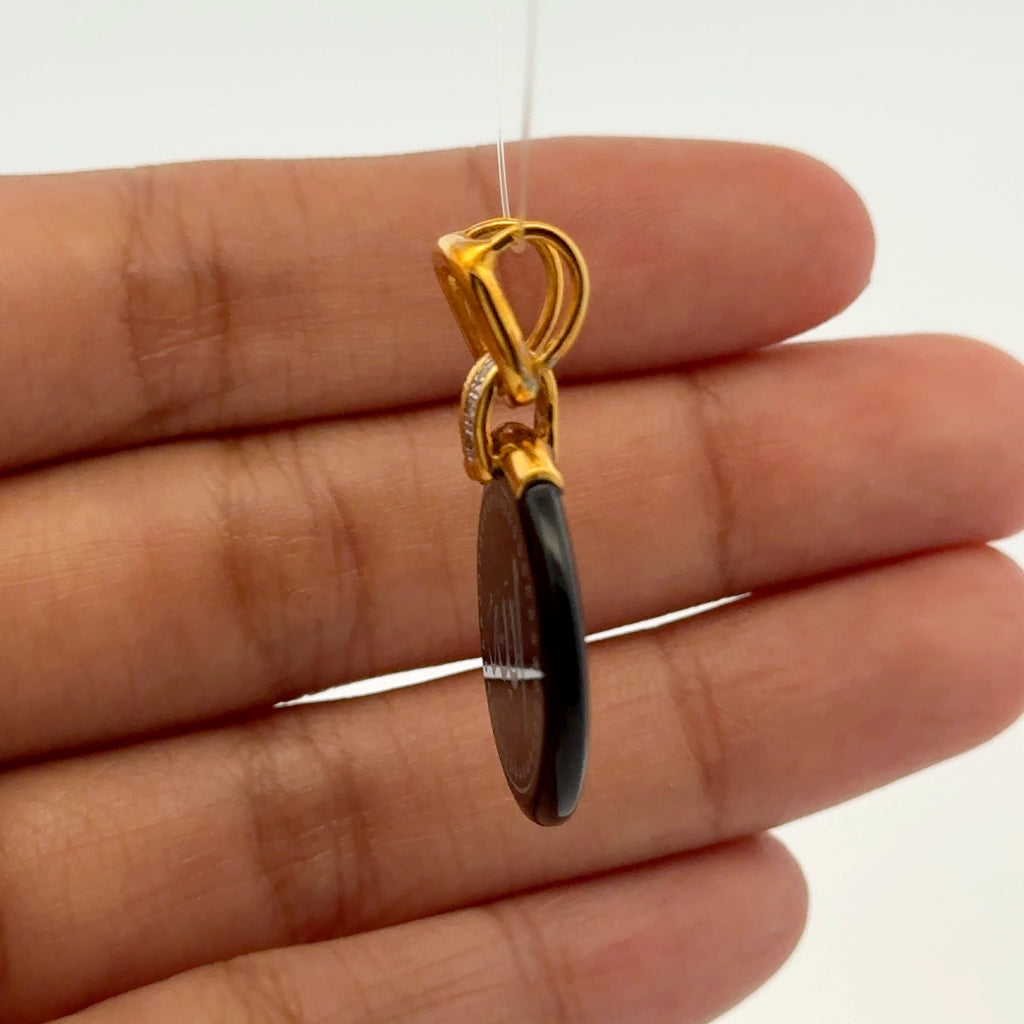 9K Yellow Gold Natural Diamond & Black Onyx Allah Arabic Calligraphy Pendant | Islamic Sacred Calligraphy Jewelry