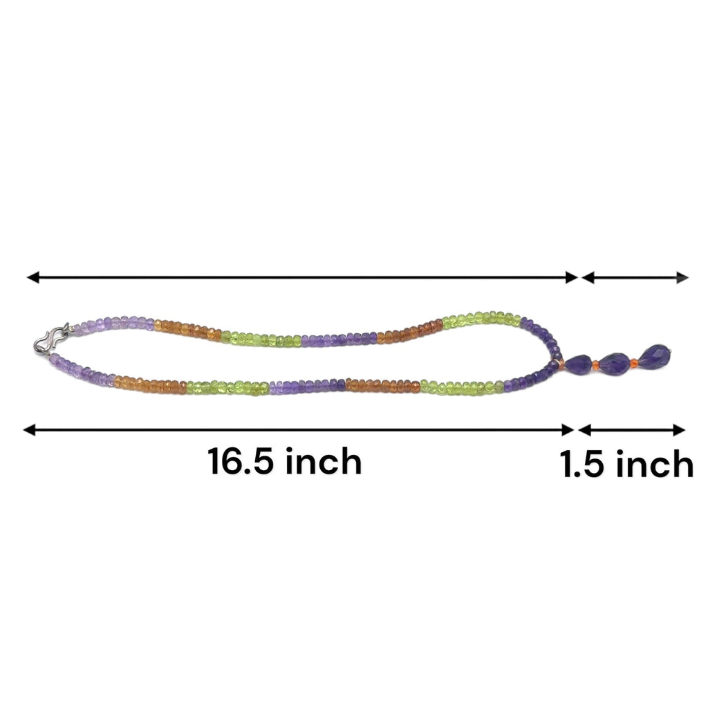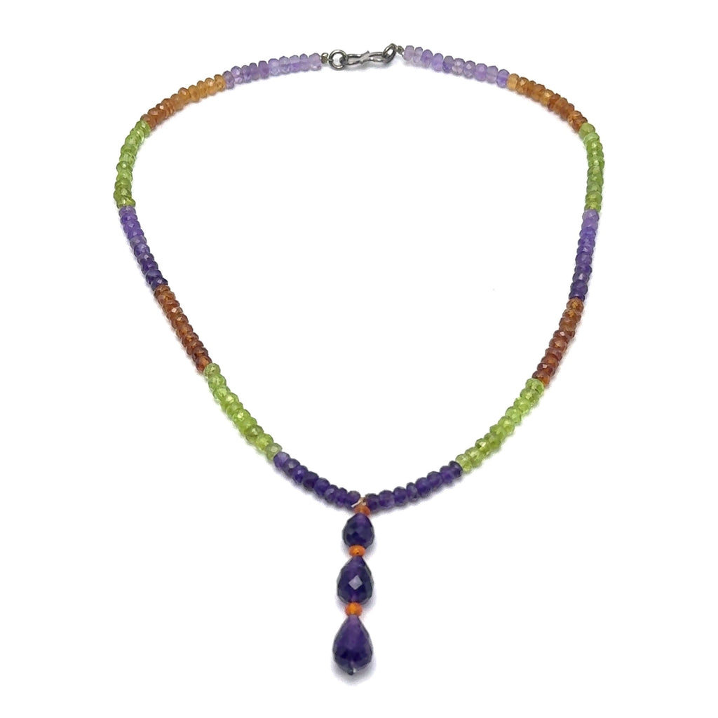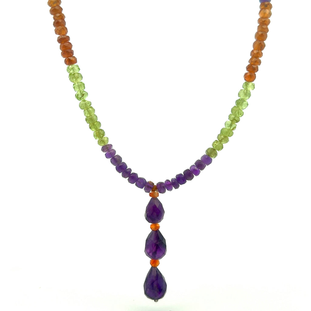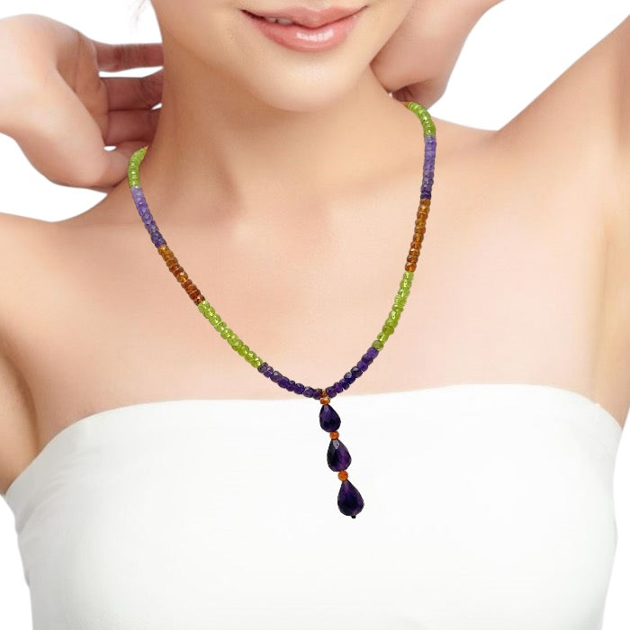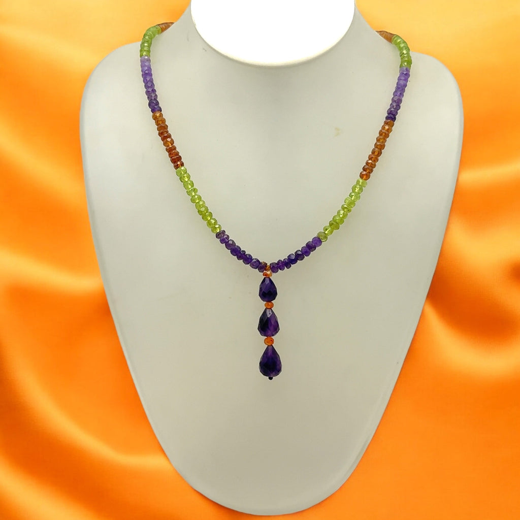 Amethyst Natural, Peridot, and Spessartite Garnet Gemstone Necklace