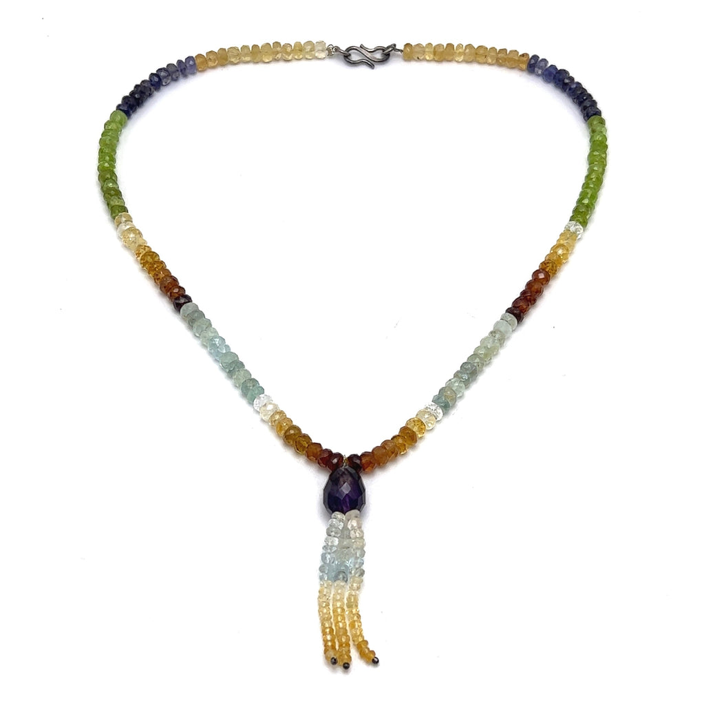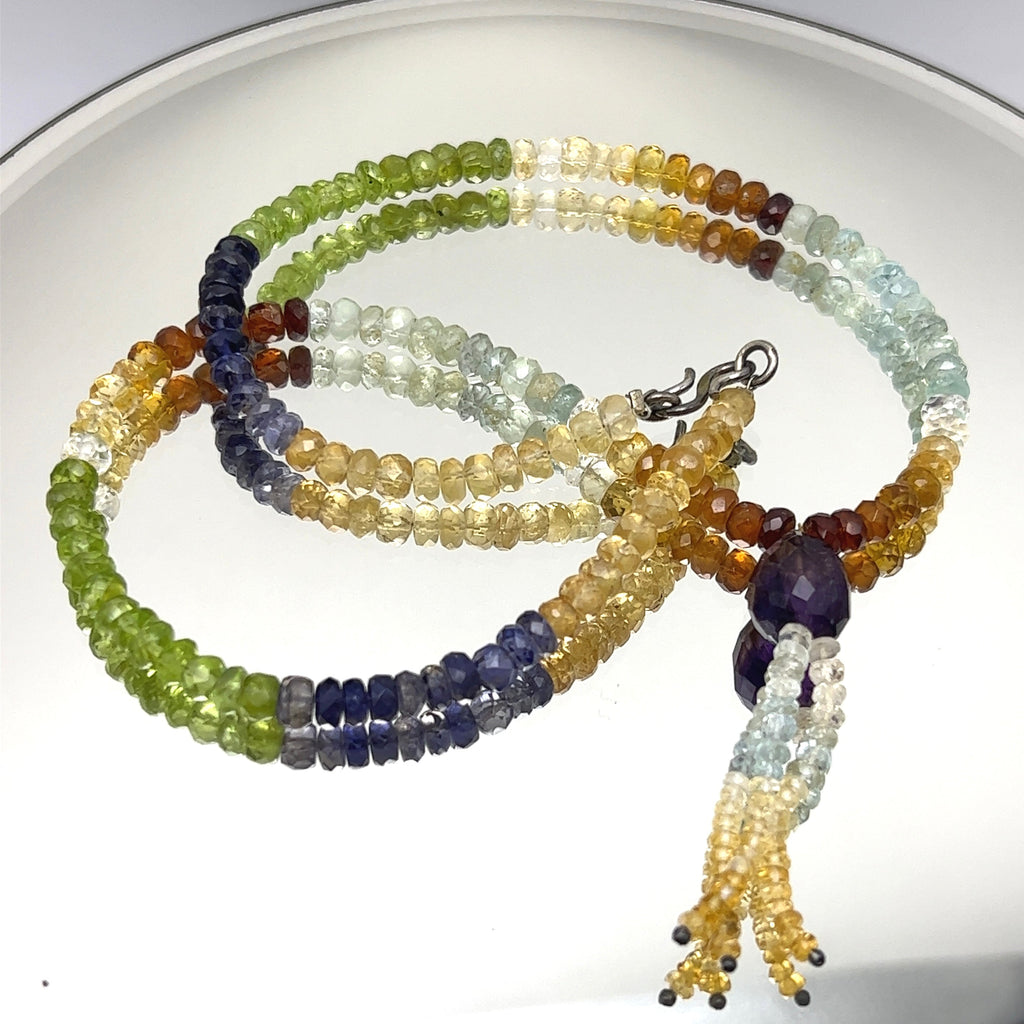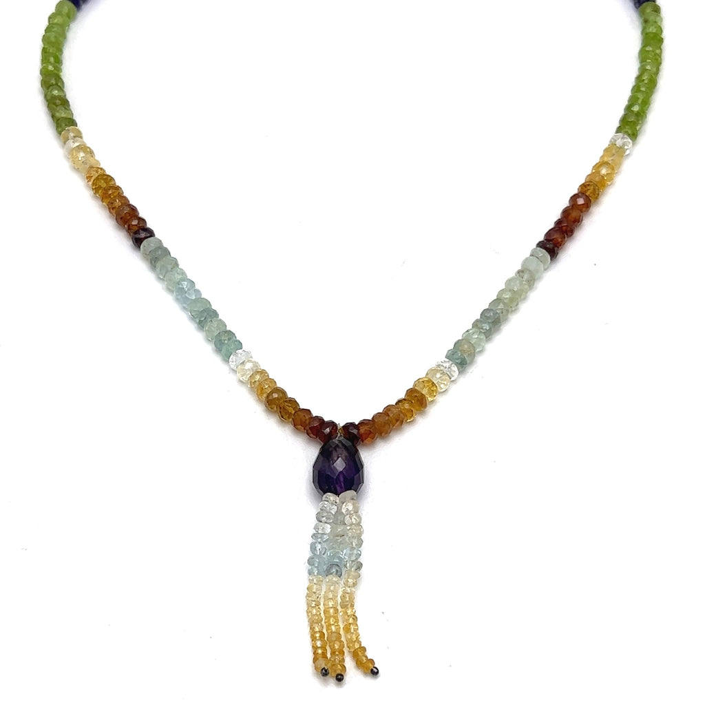 Citrine Natural, Iolite, Peridot, Aqua, Amethyst, and Spessartite Garnet Necklace