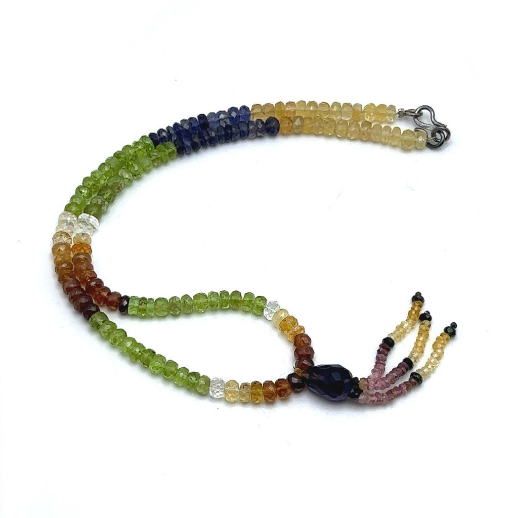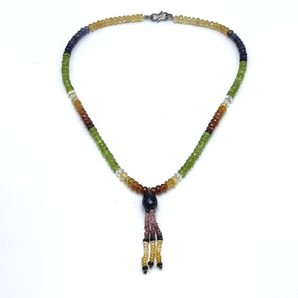 Citrine Natural, Iolite, Peridot, Spessartite, Pink Tourmaline, and Amethyst Necklace