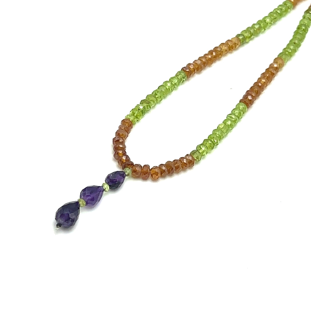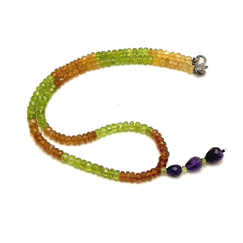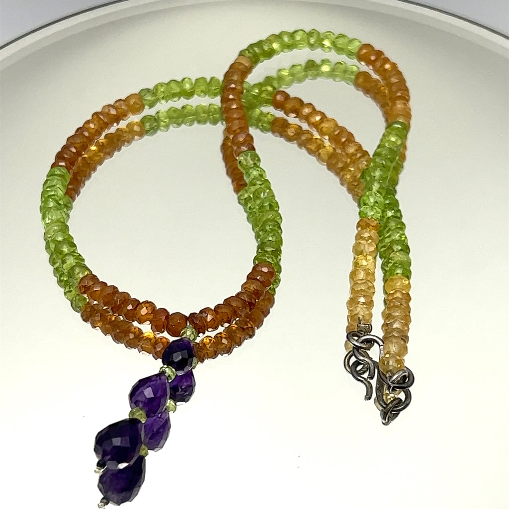 Citrine Natural, Spessartite, Peridot, and Amethyst Necklace