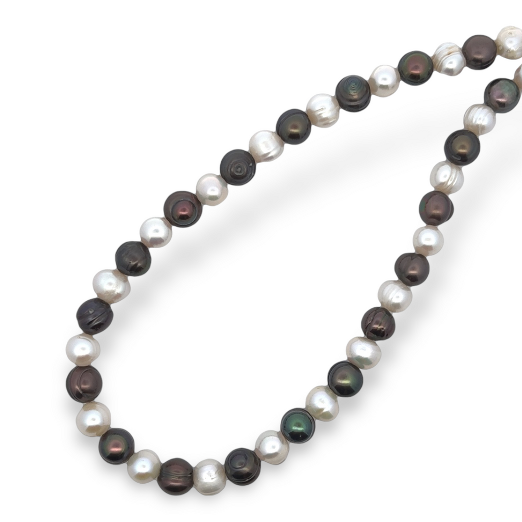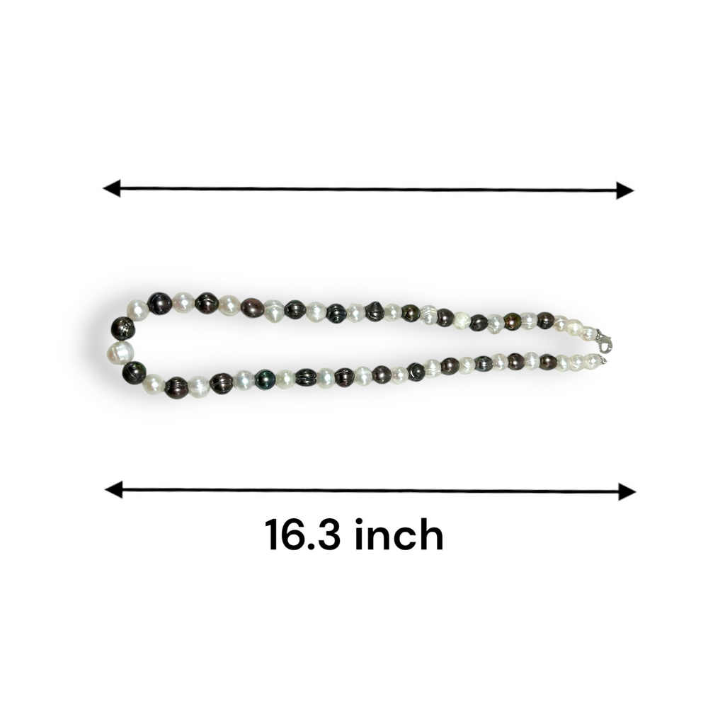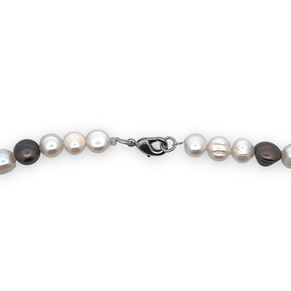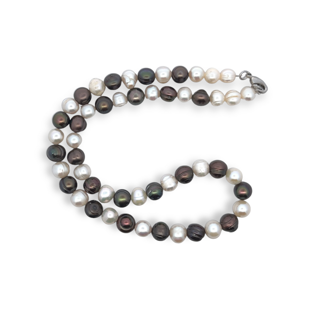 Classic Brown White Plain Ringed Pearl Necklace