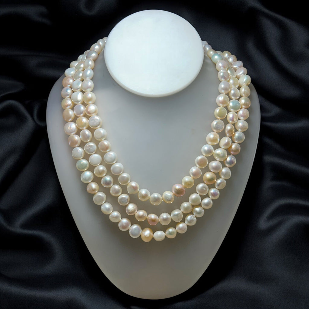 Classic Multi layered Plain Pearl Necklace