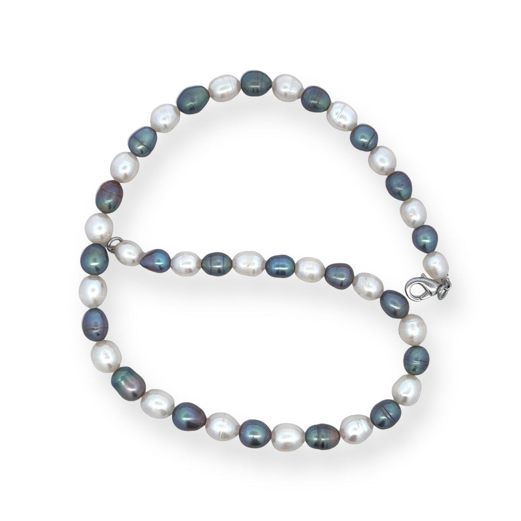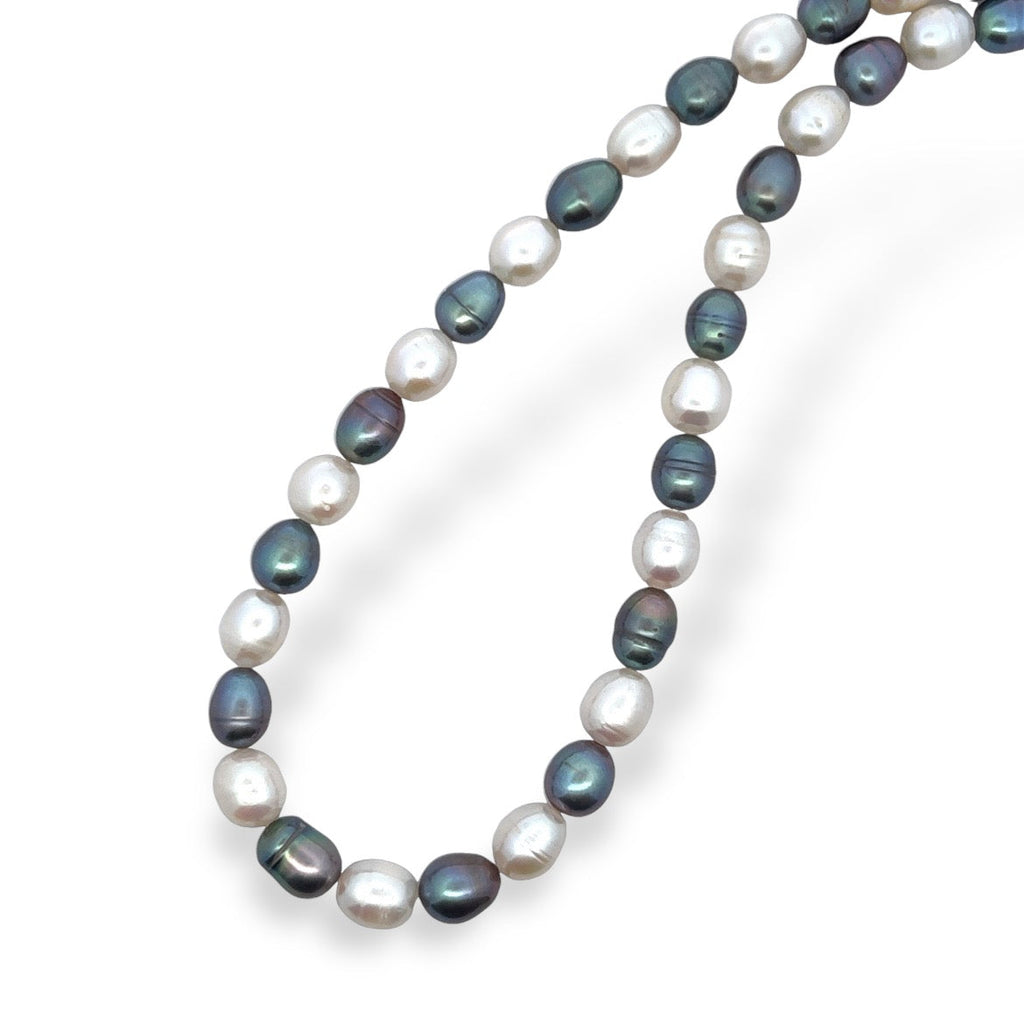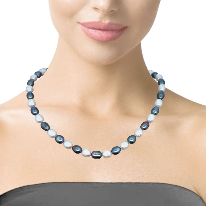 Classic White & Grey June Birthstone Plain Pearl Necklace