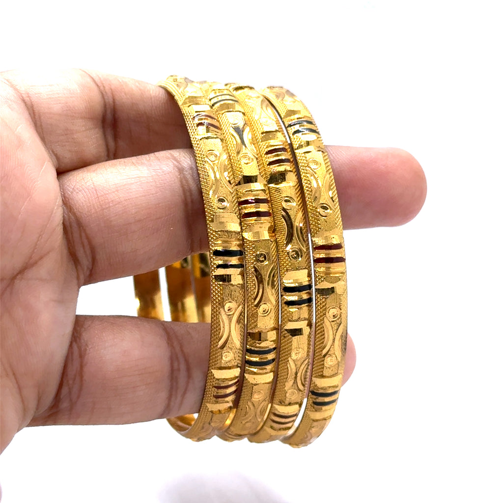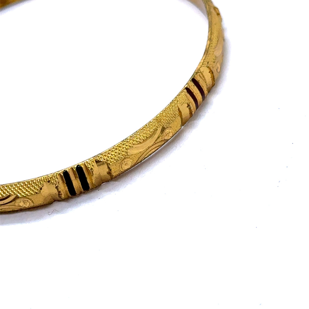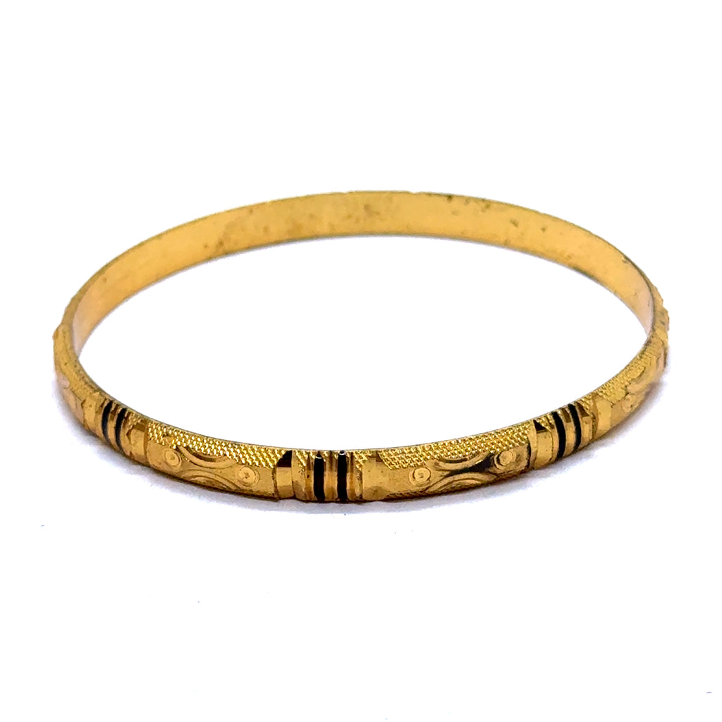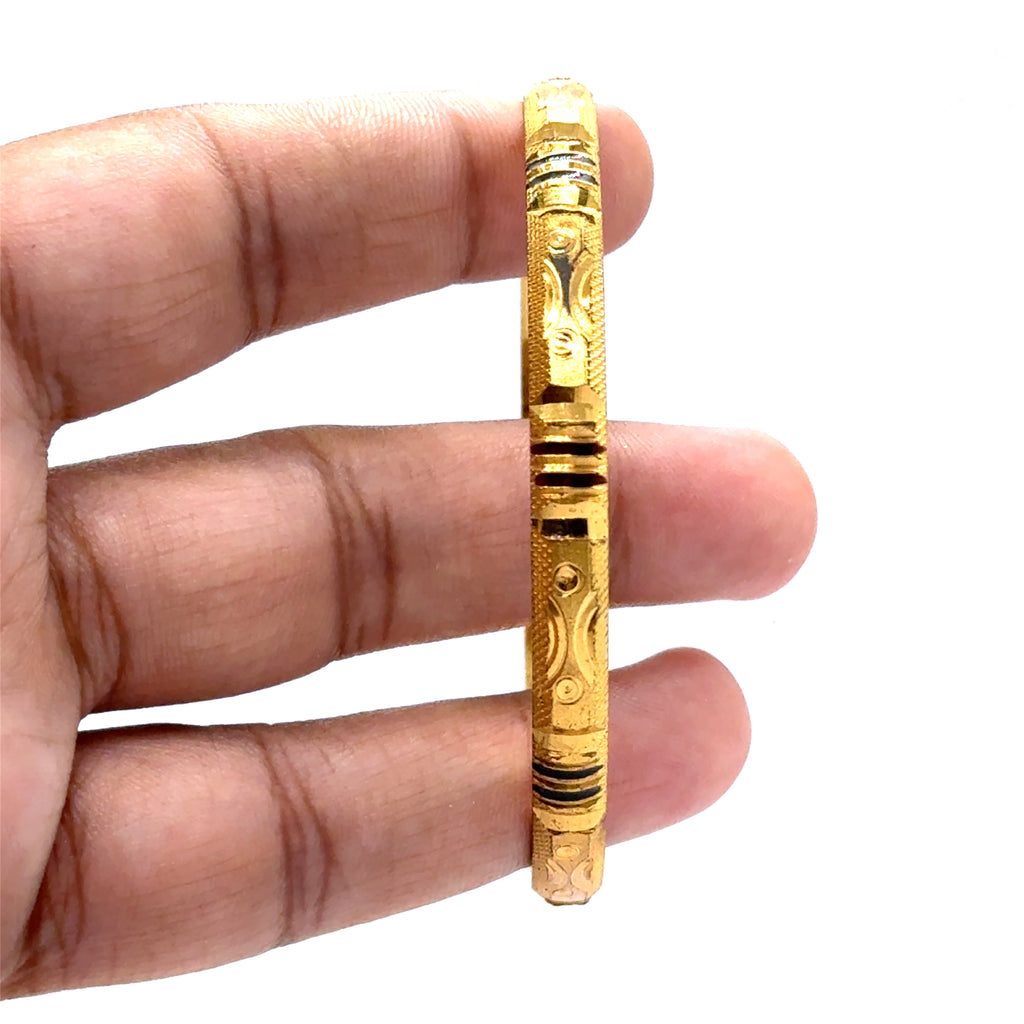 Celebrate the rich artistry of this ethnic statement bangle. Set against a luminous yellow gold plated base, this exquisite piece is masterfully detailed with intricate geometric patterns. The heritage-inspired engravings are accentuated to create a striking contrast and a deep, captivating texture, evoking a sense of timeless tradition. Perfect as a powerful standalone accessory or as the centerpiece of a curated stack, this bangle adds a bold touch of cultural elegance to any look.
