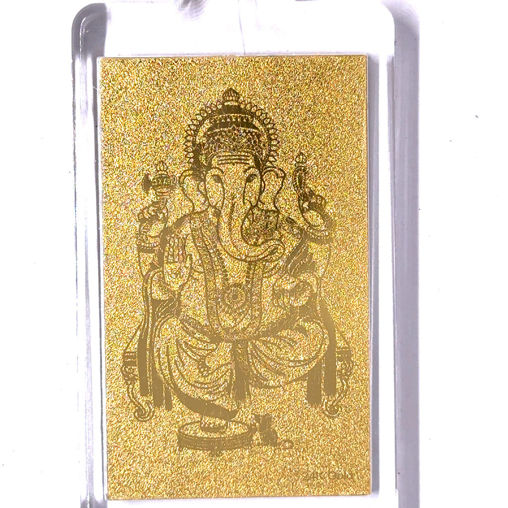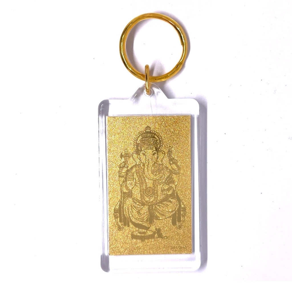 Ganesh Laser Engraved Keychain 24k Gold Foil Auspicious Gift for Protection & Success