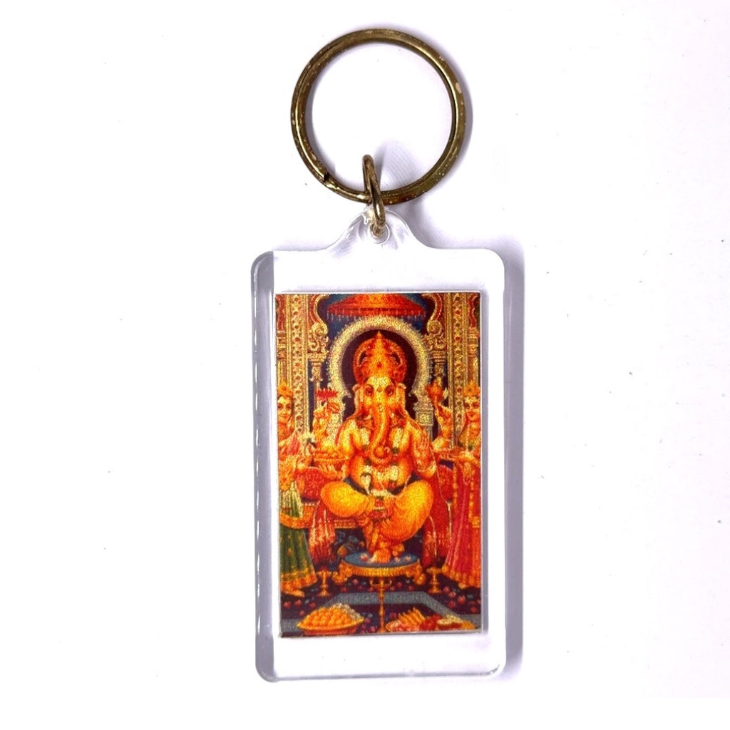 Ganesha Keychain 24K Gold Foil Color Laser Engraved Auspicious Fortune Religious Gift