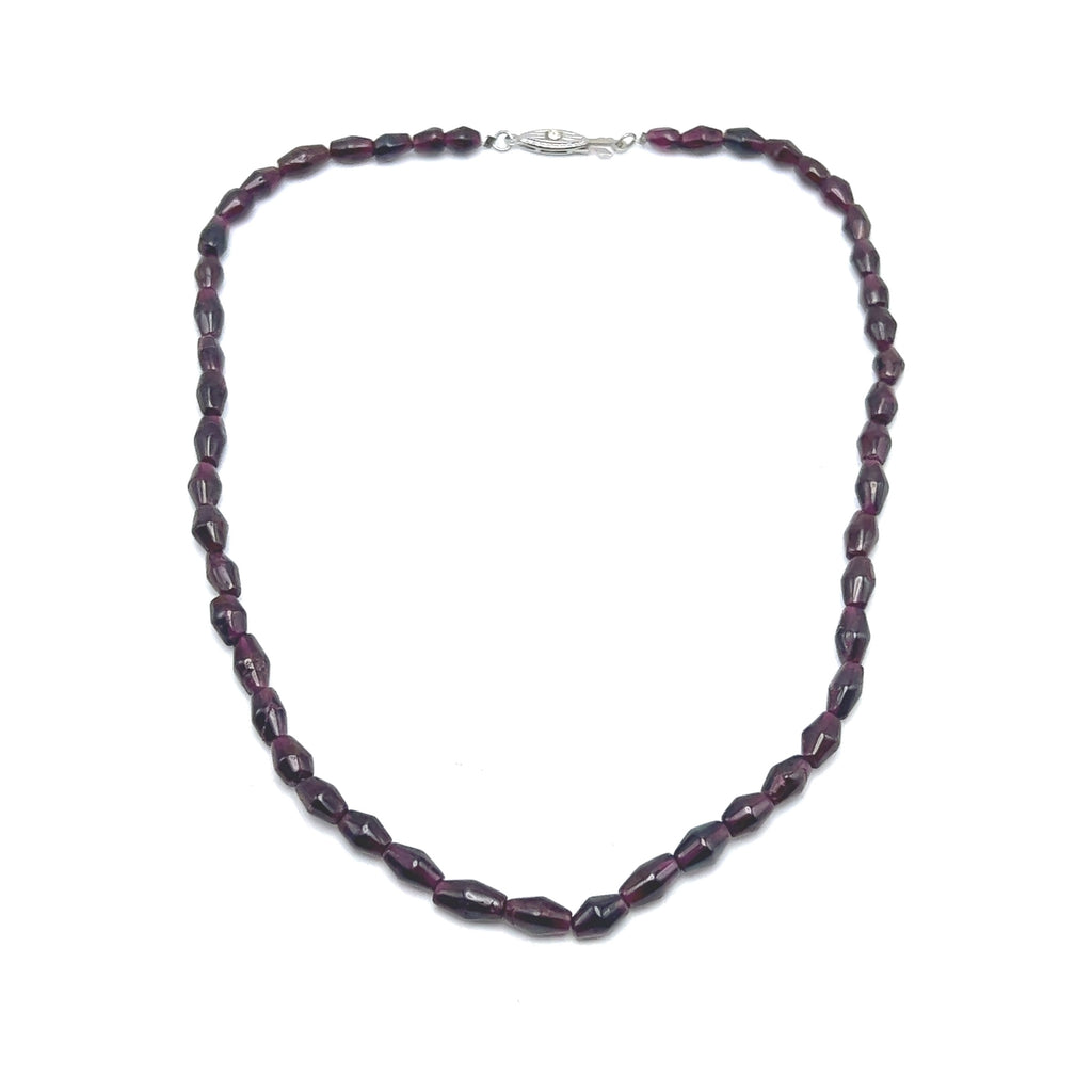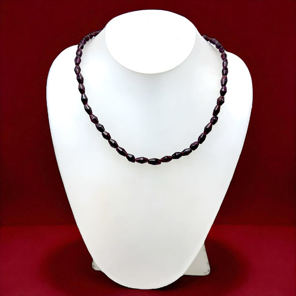 The plain, polished finish allows the natural beauty of the gemstones to stand out, while the balanced design ensures comfortable wear throughout the day. Garnet is traditionally associated with passion, strength, and positive energy, adding meaningful symbolism to this timeless piece. Suitable for everyday styling or special occasions, this necklace is a graceful expression of authenticity, simplicity, and natural gemstone elegance.