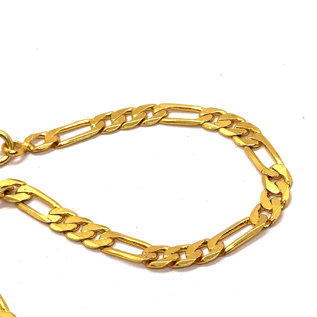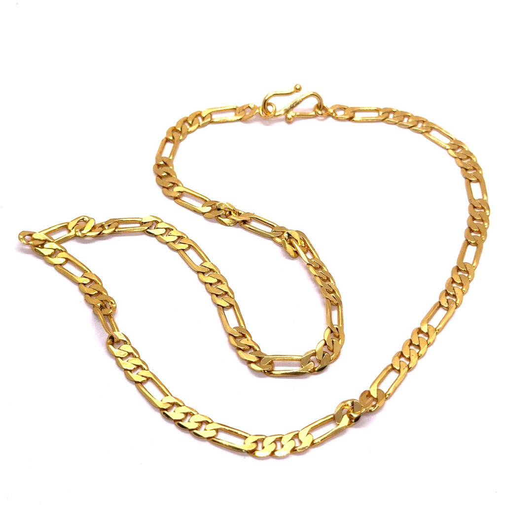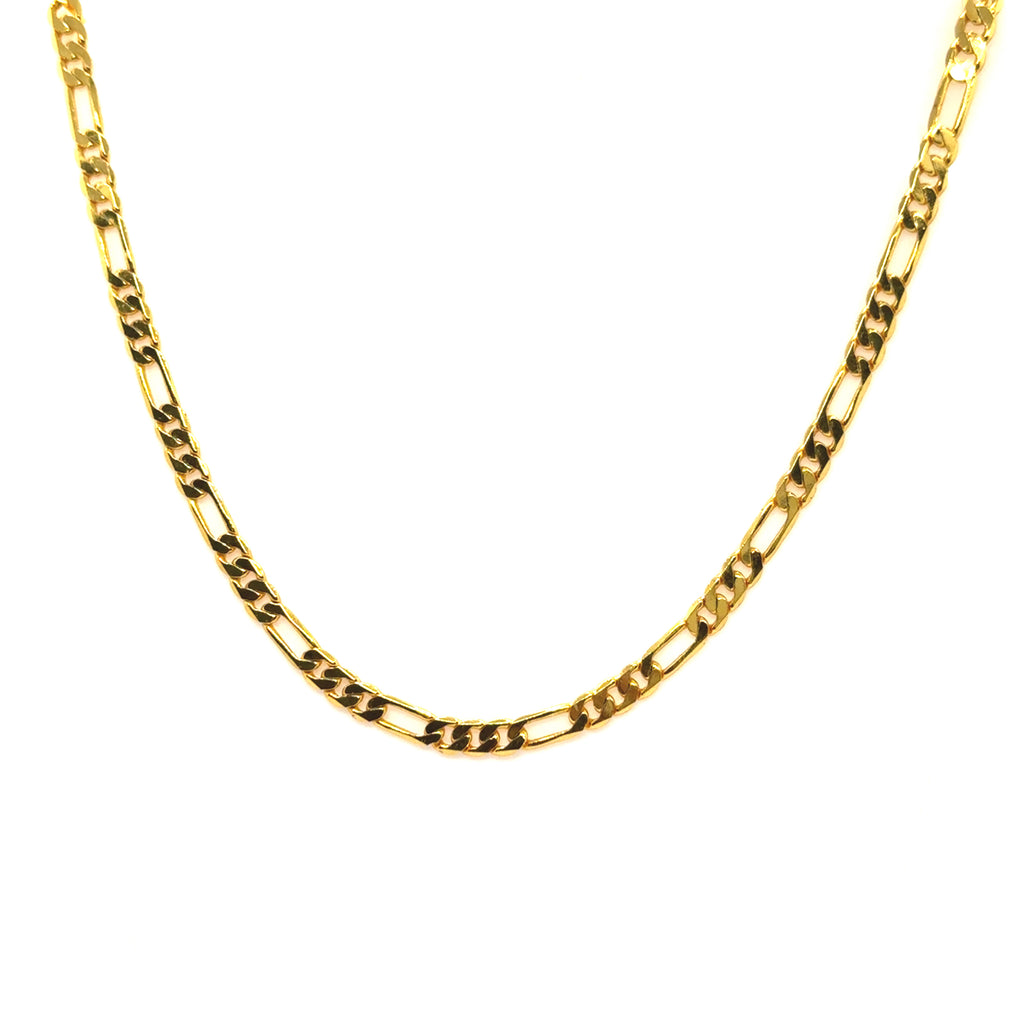 Celebrate individual style with the distinctive rhythm of this classic Figaro chain necklace. This beautiful piece is defined by its signature pattern-an alternating sequence of small, round links followed by an elongated oval link, creating a dynamic and visually interesting texture. Rendered in a lustrous, high-quality gold plating, each polished link catches the light to produce a warm, radiant gleam. Perfect as a sophisticated standalone piece that adds a touch of Italian-inspired elegance to any outfit, its unique character also makes it ideal for layering, establishing it as a versatile and eye-catching essential for any modern jewelry collection.