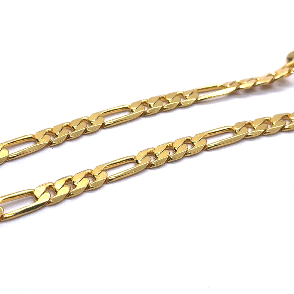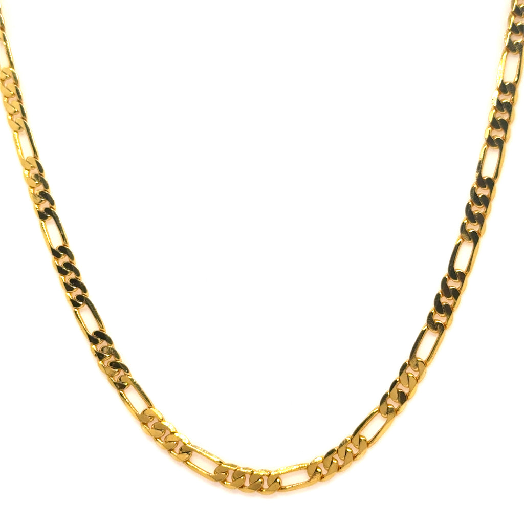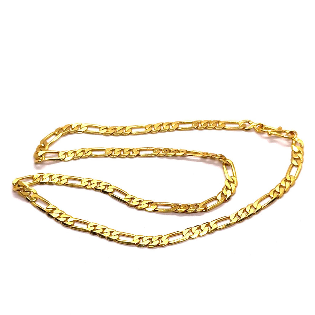 Celebrate timeless design with this classic Figaro chain necklace. This beautiful piece features the iconic rhythmic pattern of alternating short and long links, creating a look that is both dynamic and sophisticated. Polished to a brilliant shine with a lustrous gold plating, it offers a warm, radiant glow. Its enduring and versatile style makes it a perfect statement piece worn alone or the ideal base for a layered look, securing its place as an essential and elegant staple in any jewelry wardrobe.