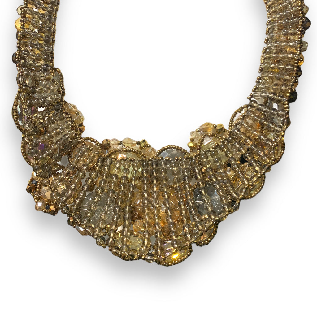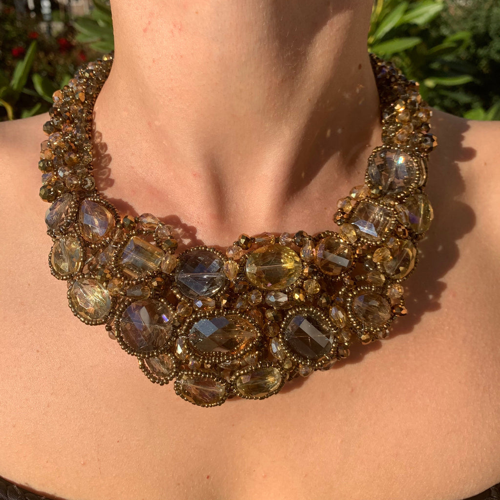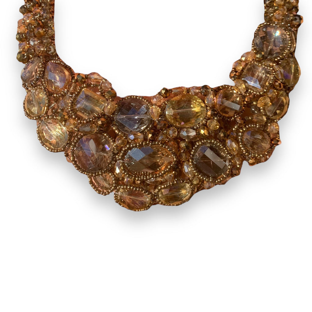 Handmade Bib Choker Smoky 20" Unique Bezel Set Beads Necklace