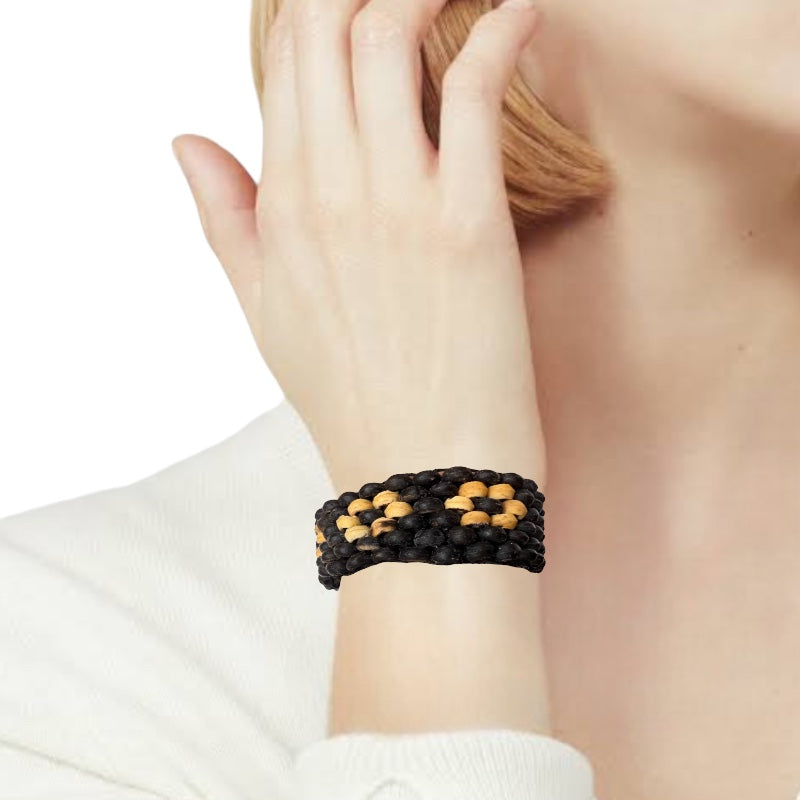 Handmade Black Coconut Shell Bracelet Stretchable Eco-Friendly Band