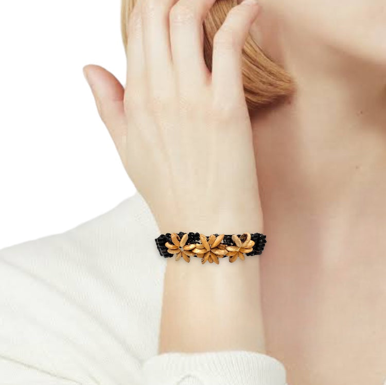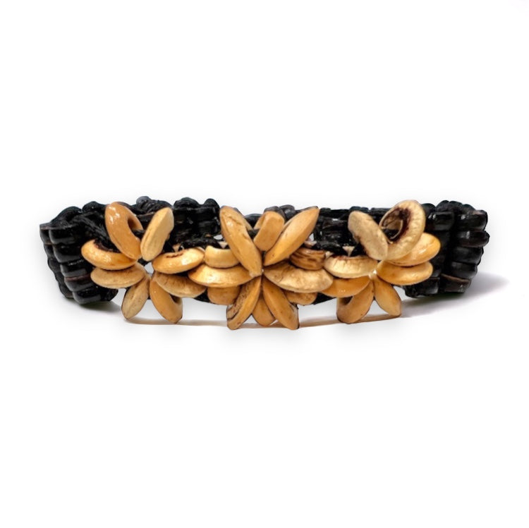 Handmade Black Coconut Shell Braided Bracelet Stretchable Eco-Friendly Band