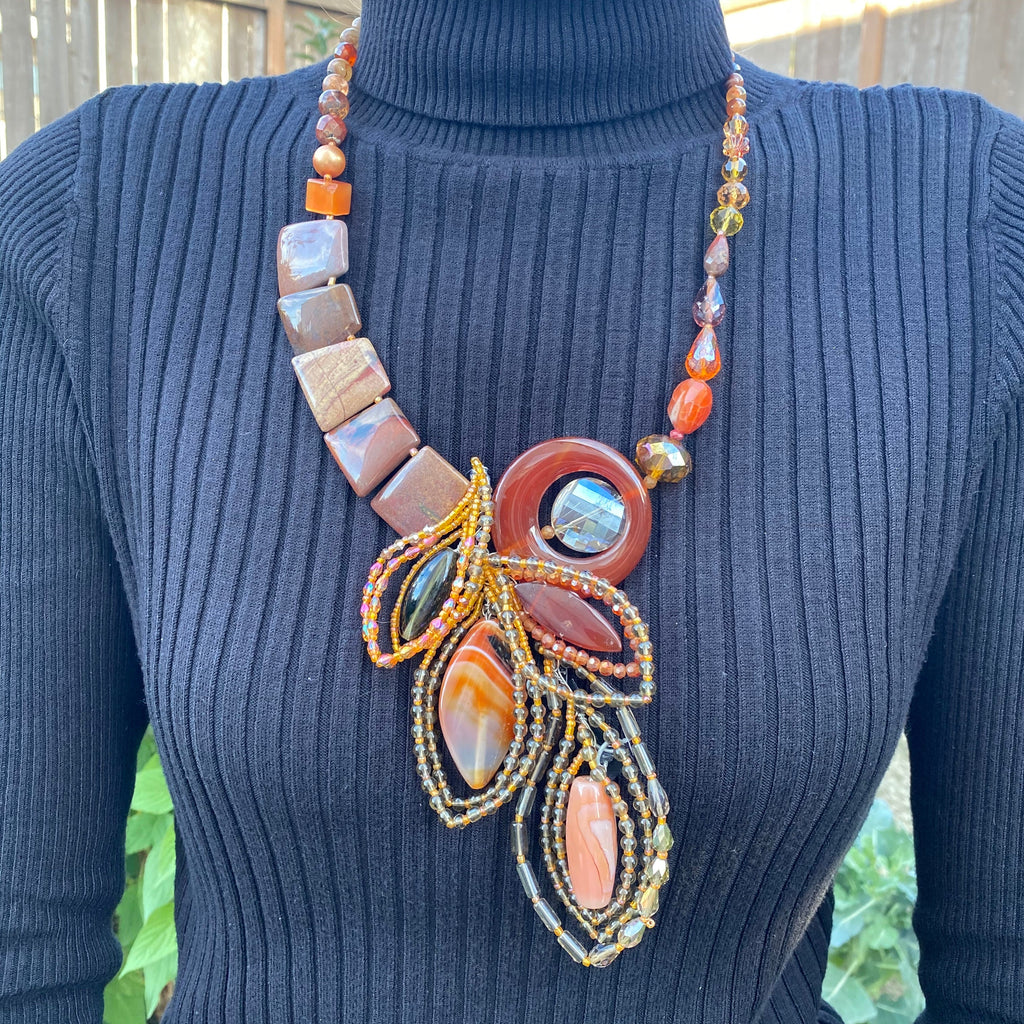 Handmade Body Necklace 19" Orange Agate Gemstone Unique Leaf Necklace