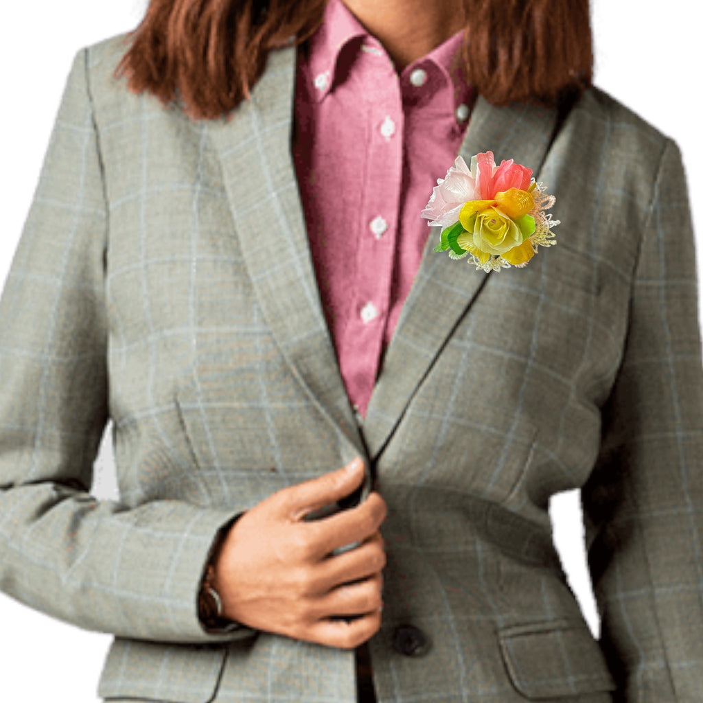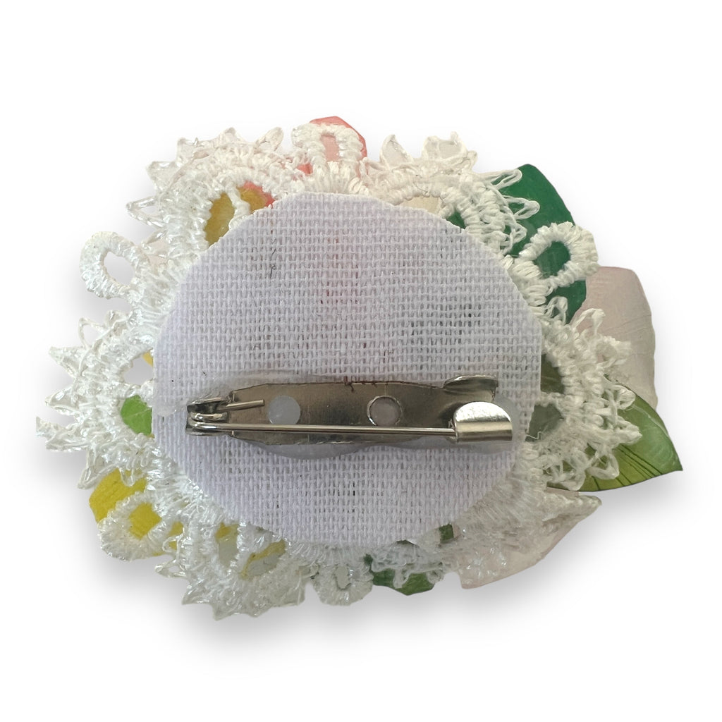 Handmade Brooch Boutonniere Unique Fish Scales Yellow Pink Orange Tri-sided Rose